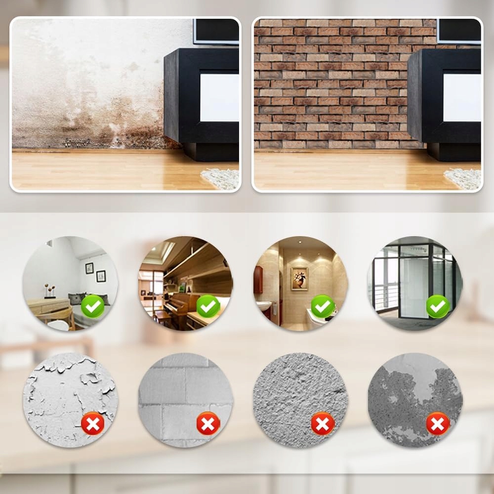 ◾ Самоклеючі 3D шпалери під камінь прості в установці. Відірвіть несучу фольгу та наклейте її. Ви можете легко замінити різні візерунки та змінити стиль простору, роблячи свій дім завжди новим.