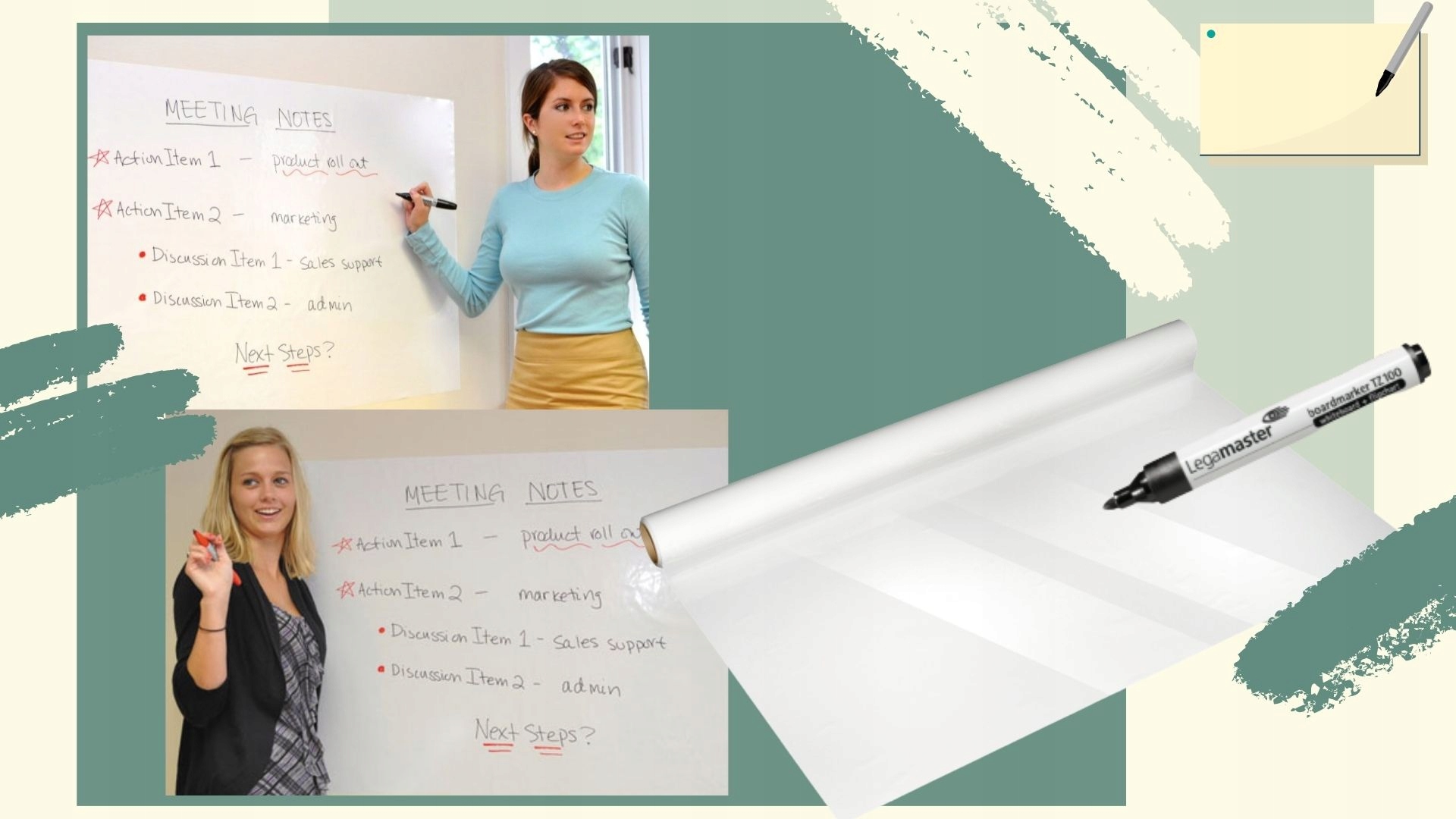 Фольга з електростатичним зарядом – це запатентована технологія, яка використовувалася для створення додаткової поверхні для нотаток. Це альтернатива стандартним дошкам і фліпчартам, а також самоклеючим аркушам. Просто розмотайте аркуш із рулону та покладіть його куди завгодно.