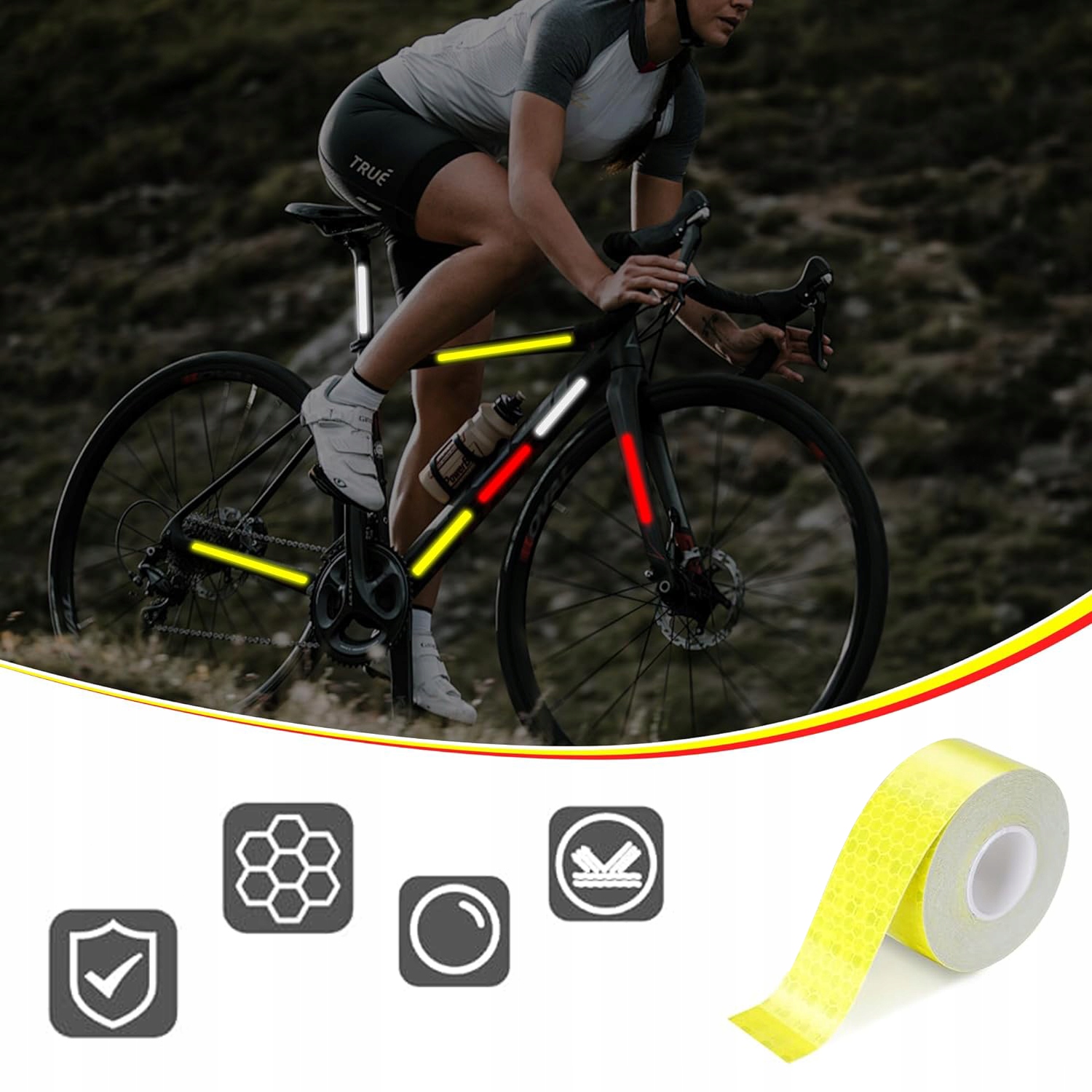 - універсальне використання : ідеально підходить для маркування транспортних засобів, обладнання, доріжок, бар'єрів та всіх місць, що потребують додаткової видимості.