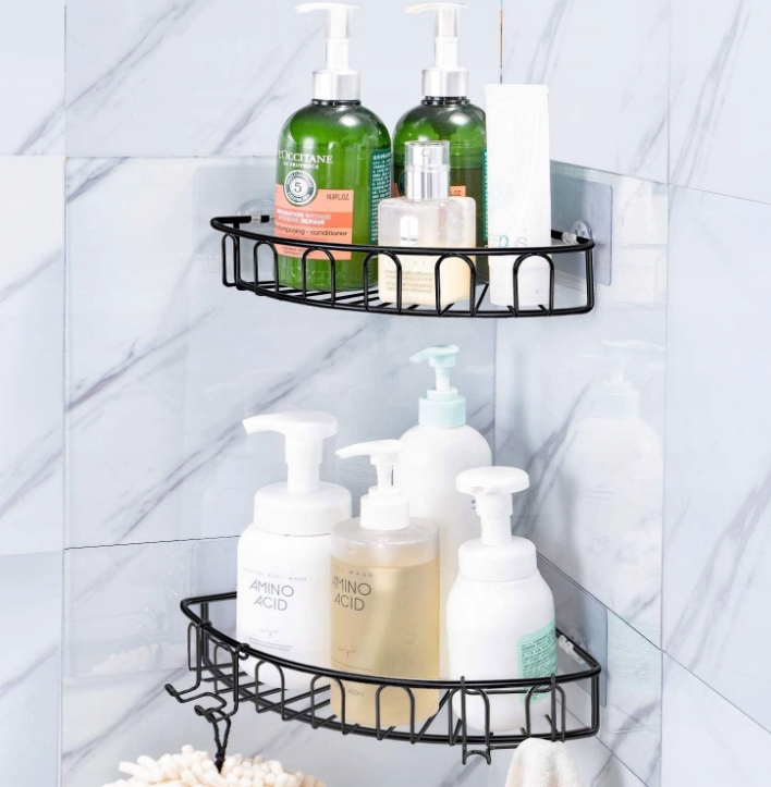 САМОКЛЕЮЧА КУХОННА ПОЛИЧКА ДЛЯ ВАННОЇ, КУТОВА МЕТАЛЕВА, ЧОРНИЙ ЛОФТ
