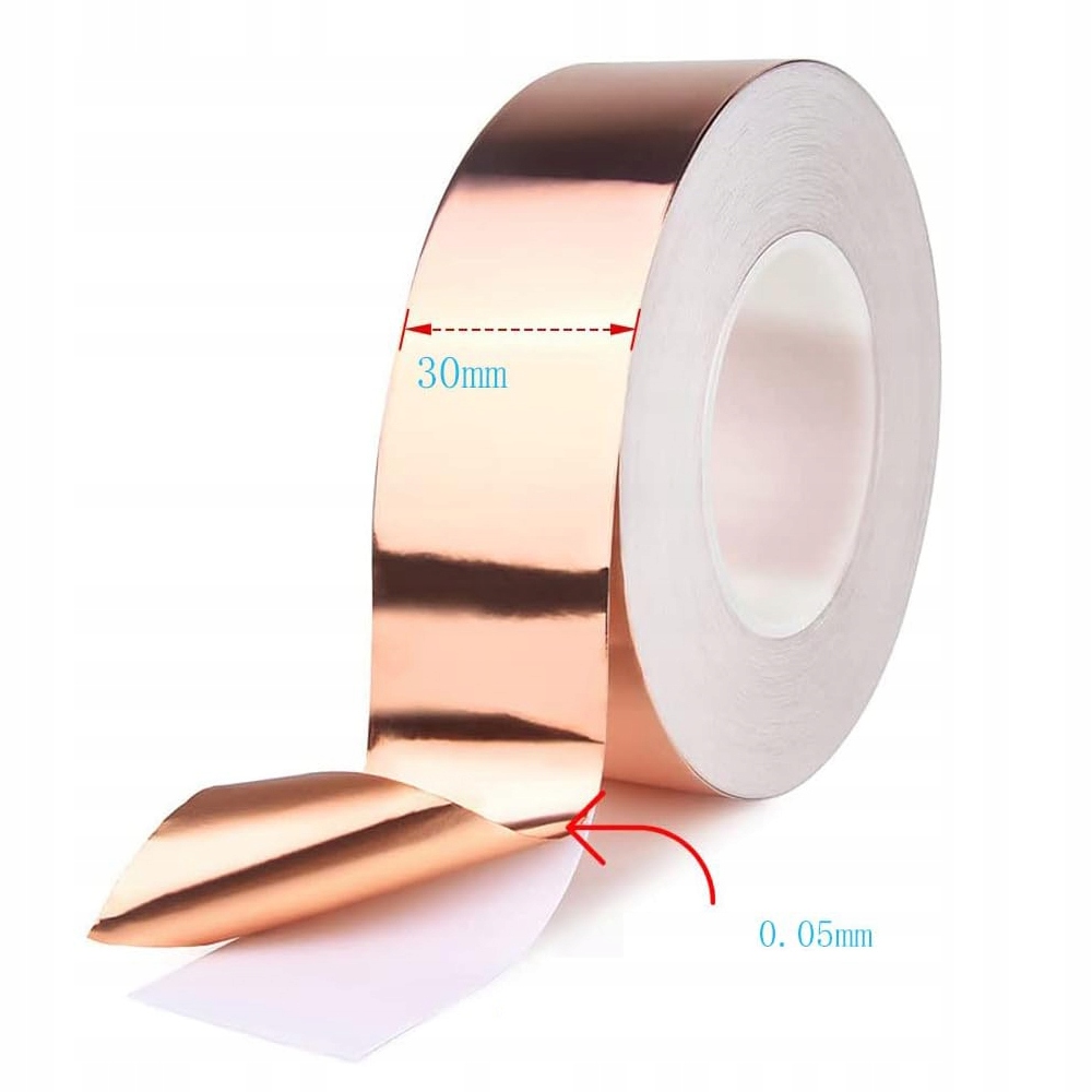 Самоклеюча мідна стрічка EMI з клеєм 30м × 30мм