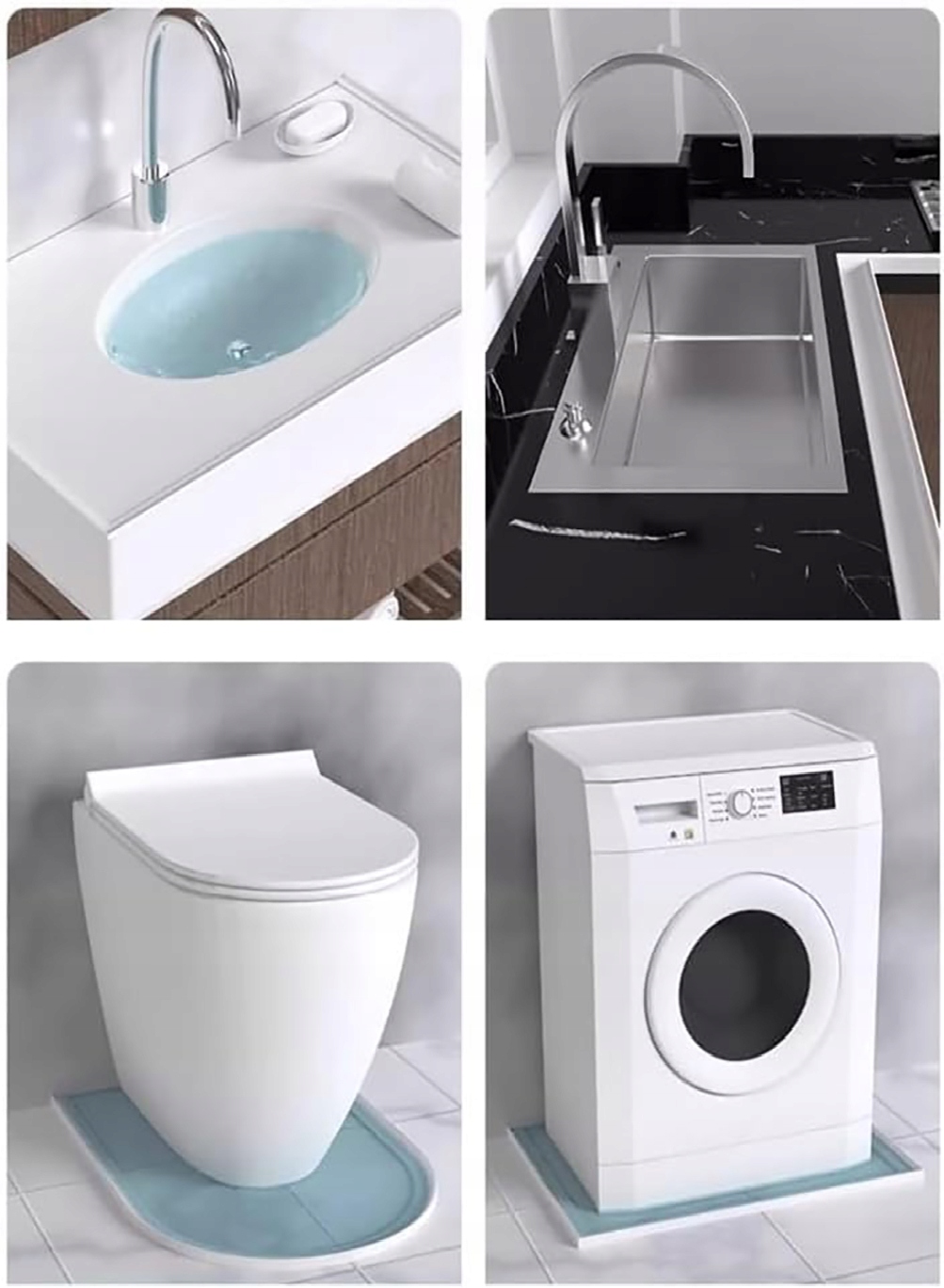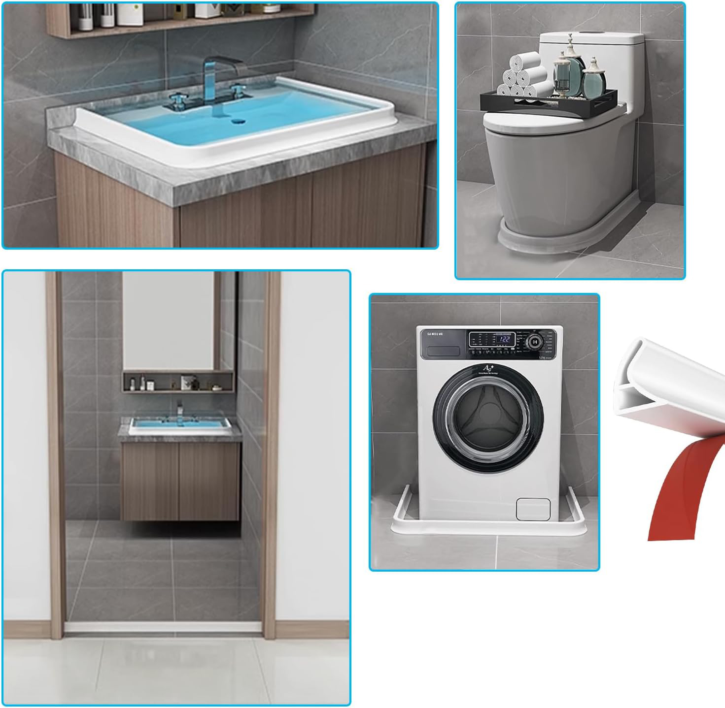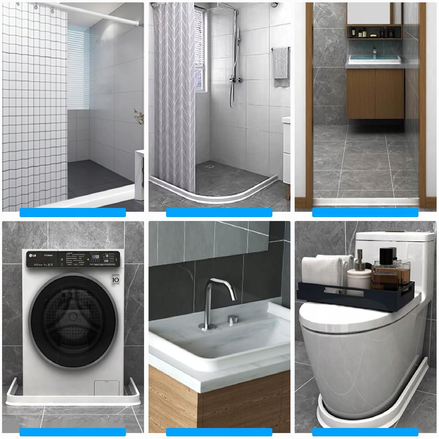 - Поріг можна встановити практично на будь-яку гладку поверхню, включаючи підлогу душової кабіни, душовий піддон, кухонну раковину, під дверима ванної кімнати, бортики ванни, пральні машини та унітази. Він ефективно блокує потік води та легко висихає, створюючи водонепроникний бар’єр.