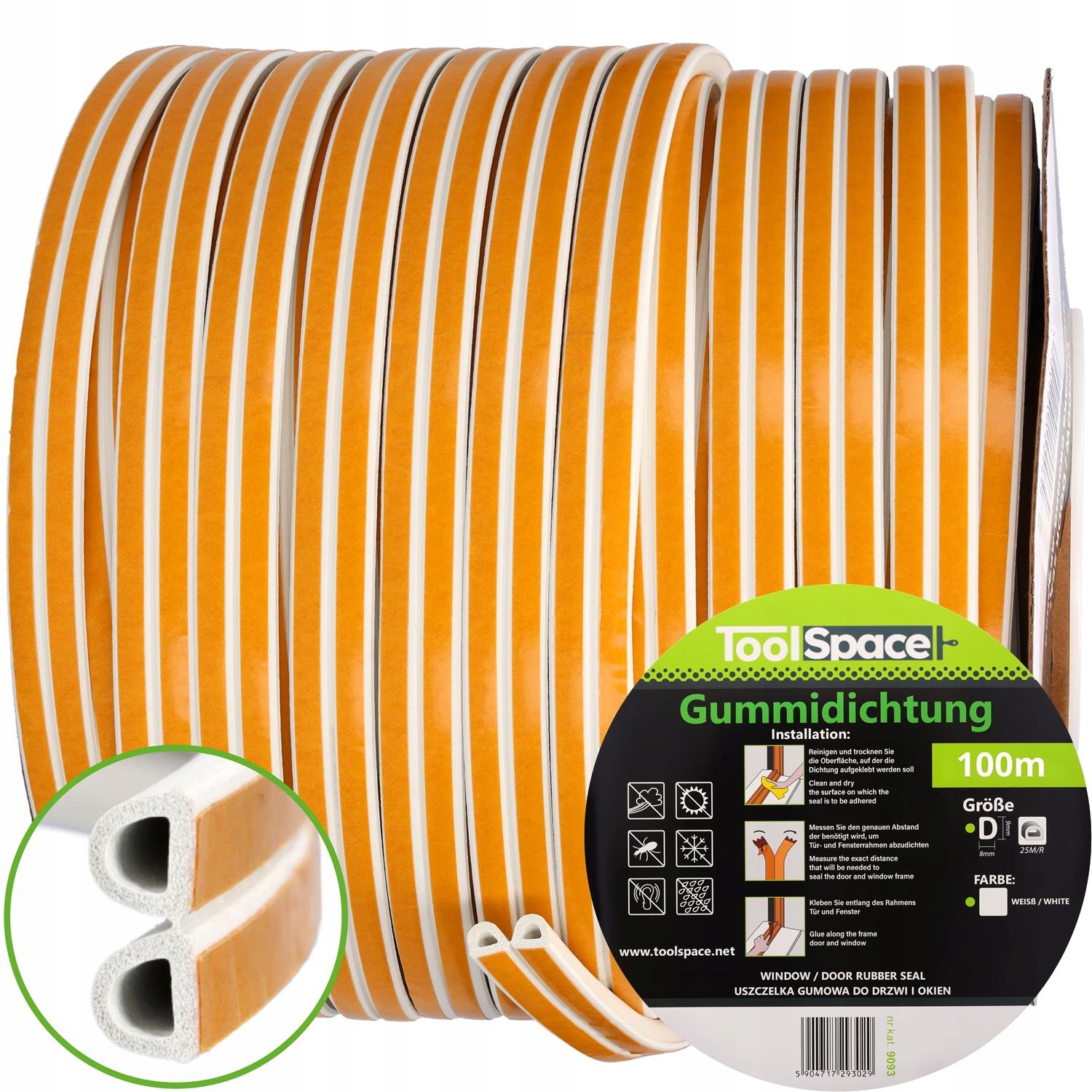 Ущільнювач WINDOW, тип D, білий, 100 метрів Ущільнювачі ToolSpace: