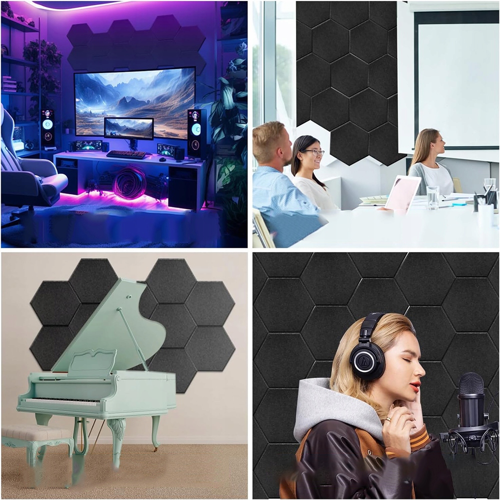 ★ Шестикутна акустична панель має широкий спектр застосувань і може широко використовуватися в студіях звукозапису, домашніх студіях, домашніх кінотеатрах, офісах і навчальних кімнатах.