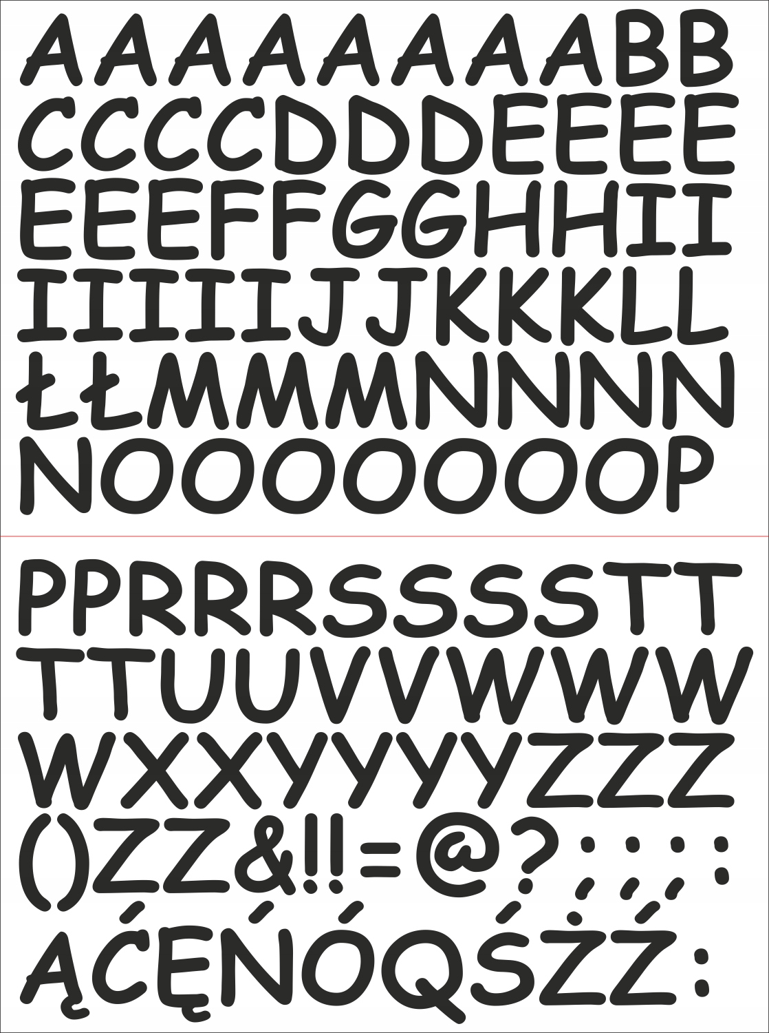 Аркуш містить саме той набір символів, який показано на зображенні нижче. Символи в кожному шаблоні мають такий зріст, як показано нижче.