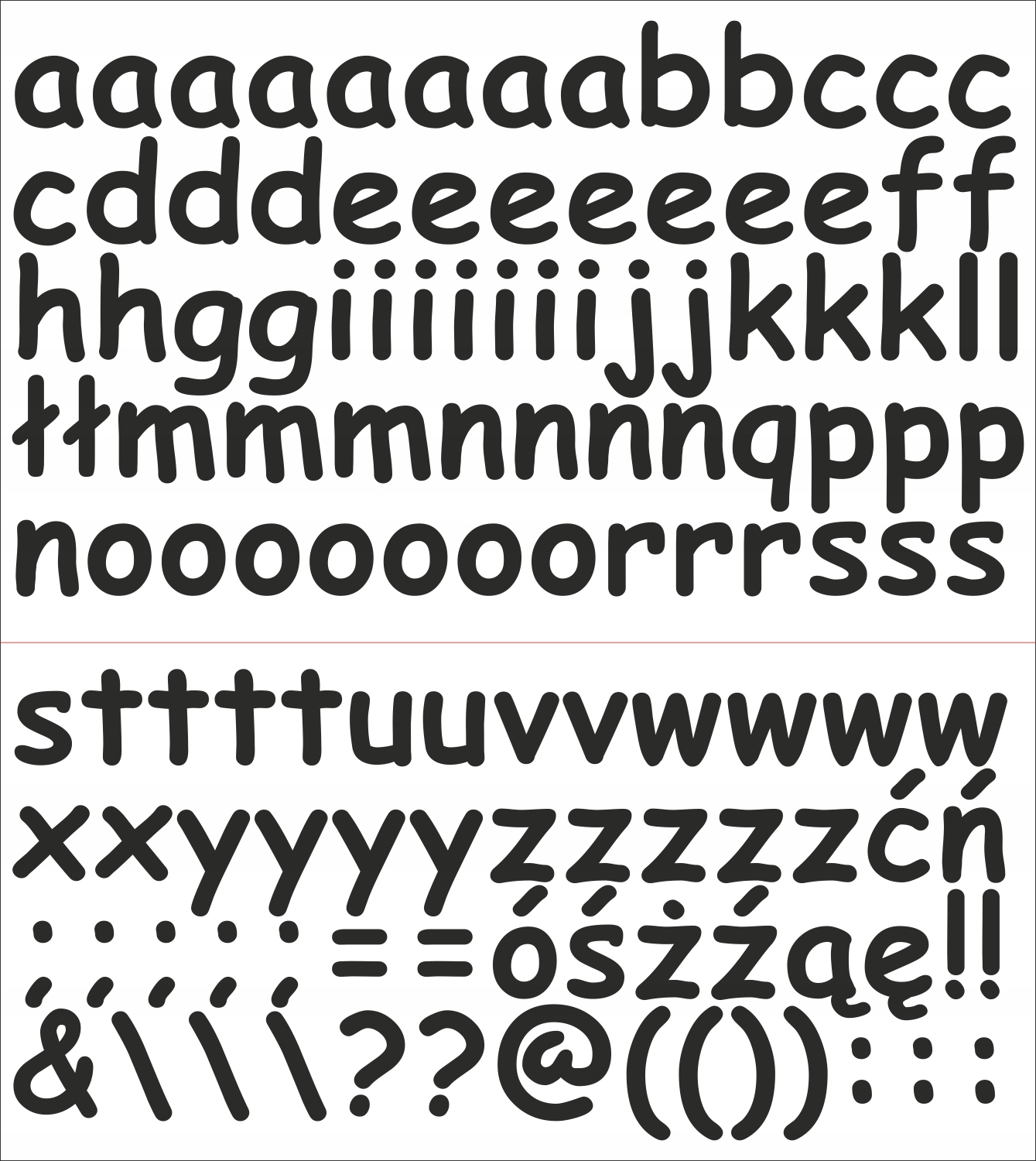Аркуш містить саме той набір символів, який показано на зображенні нижче. Символи в кожному шаблоні мають такий зріст, як показано нижче.