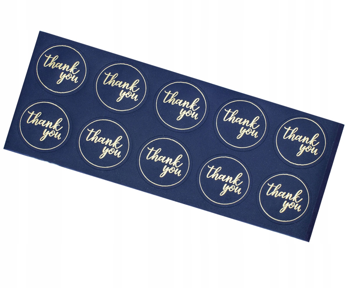 Величезний набір із 100 темно-синіх стікерів із золотистим написом THANK YOU. Вони чудово підійдуть як для ручної роботи, так і для акценту в упаковці маленьких подарунків для гостей на весіллі чи подарунків на день народження.