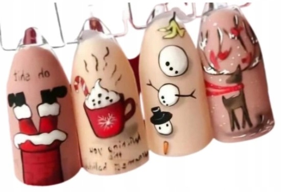 ✔️Білі зірки, сніжинки, бантики, олені та лінійні ялинки, які ідеально пасують до будь-якого манікюру,