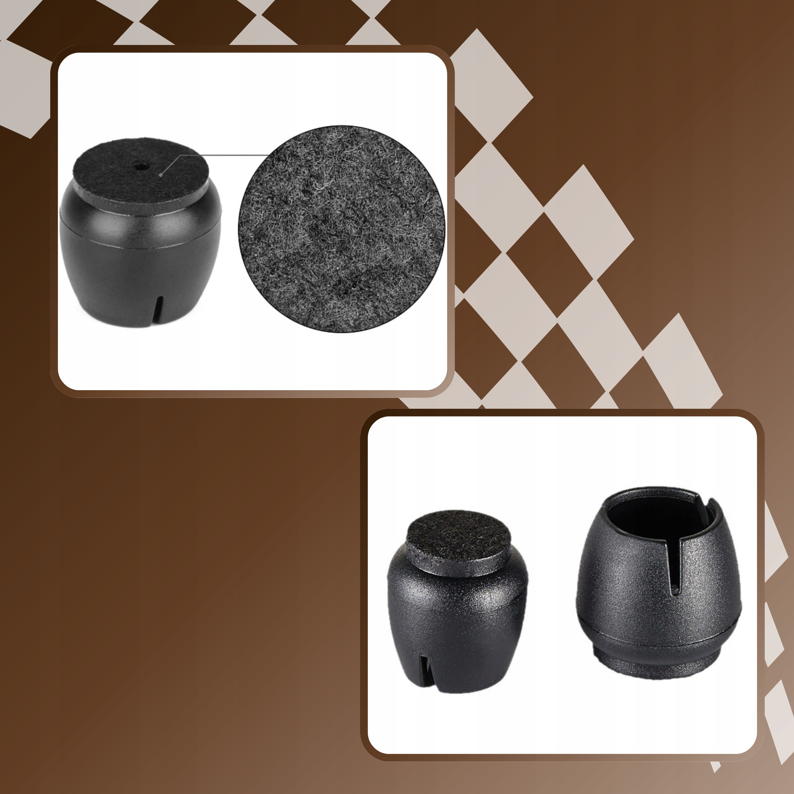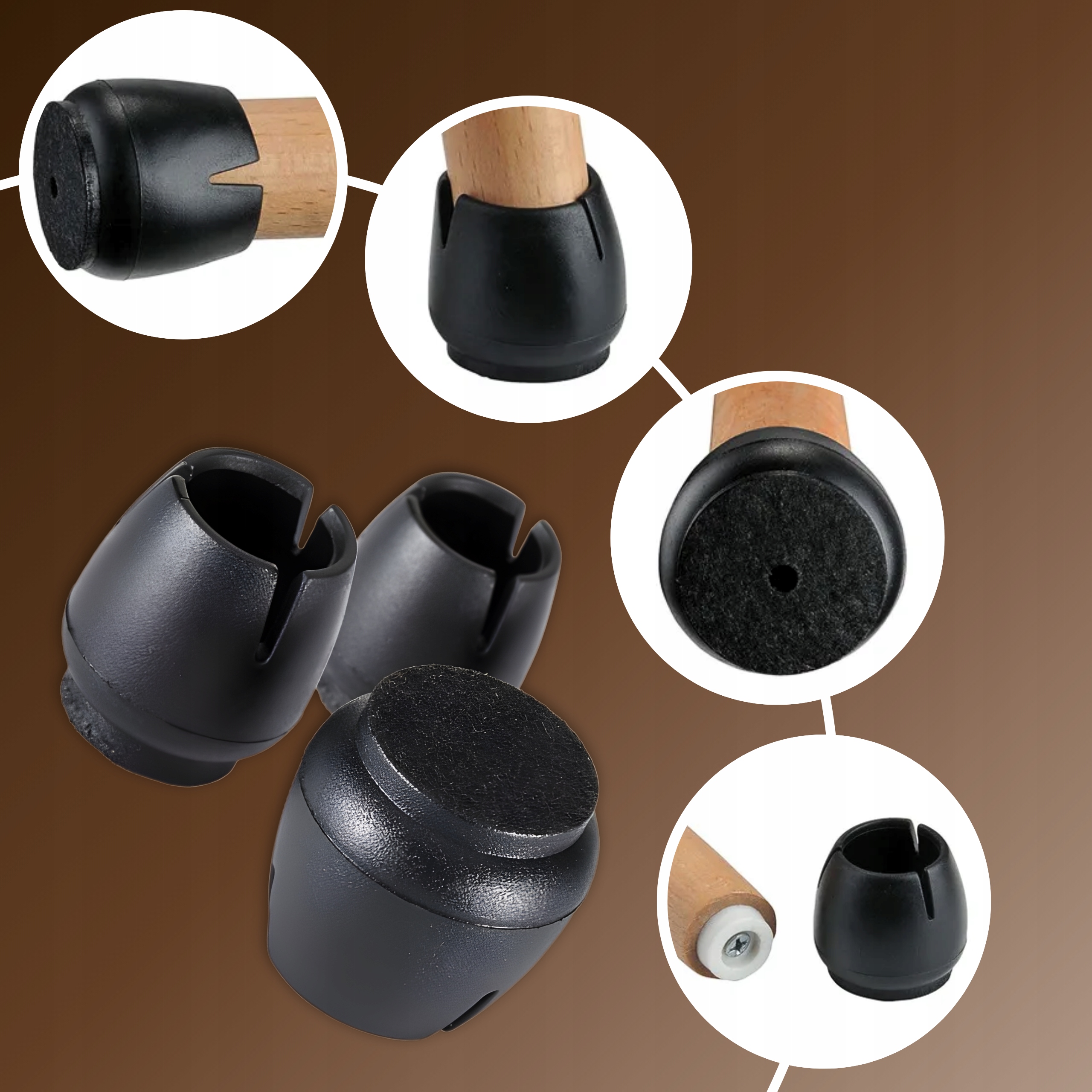 Ефективний захист паркетної підлоги, панелей та плитки. Тихе ковзання, підходить для ніжок 15-18 мм, міцний силіконовий та гелевий фетр для тривалого терміну служби.
