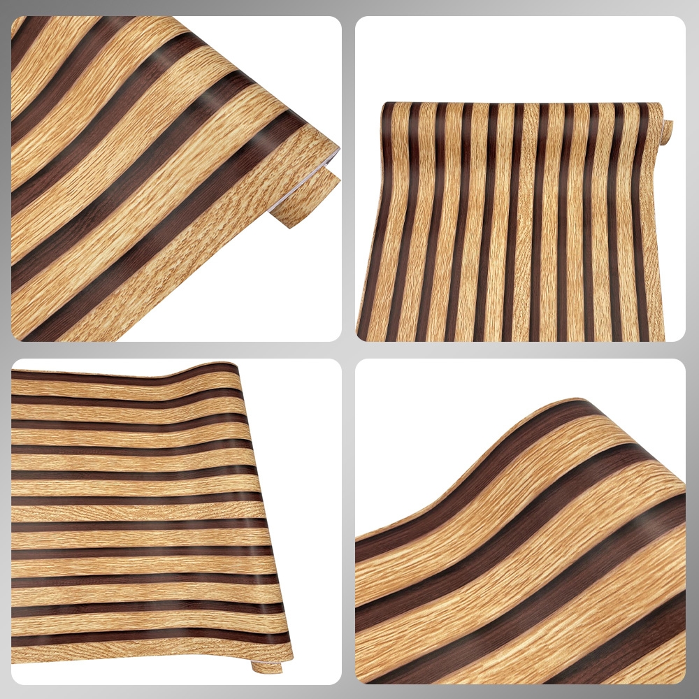 Сучасні самоклеючі шпалери розміром 60см х 10м, що імітують натуральну опалубку коричневого відтінку. Виготовлені з високоякісного ПВХ вінілу, створюють ілюзію справжнього дерева, додаючи глибини та тепла простору. Ідеально підходить для швидкої трансформації інтер’єру без необхідності ремонту.