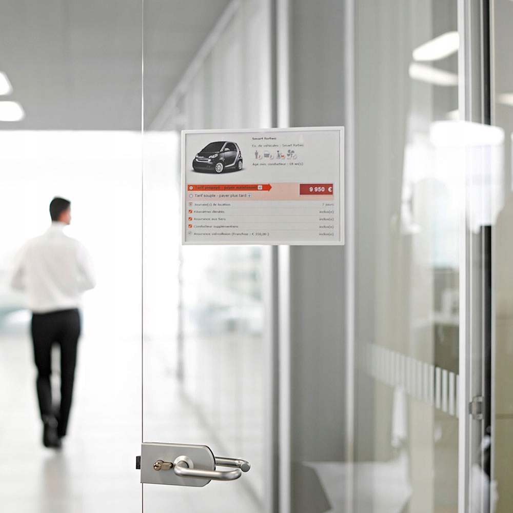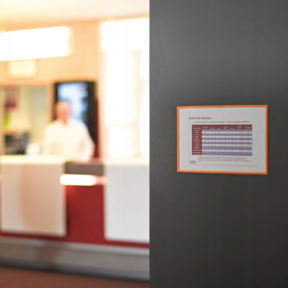 Самоклеюча настінна бирка Tarifold із синьою рамкою виготовлена з надзвичайно міцного матеріалу ABS, стійкого до тріщин та пошкоджень. p>