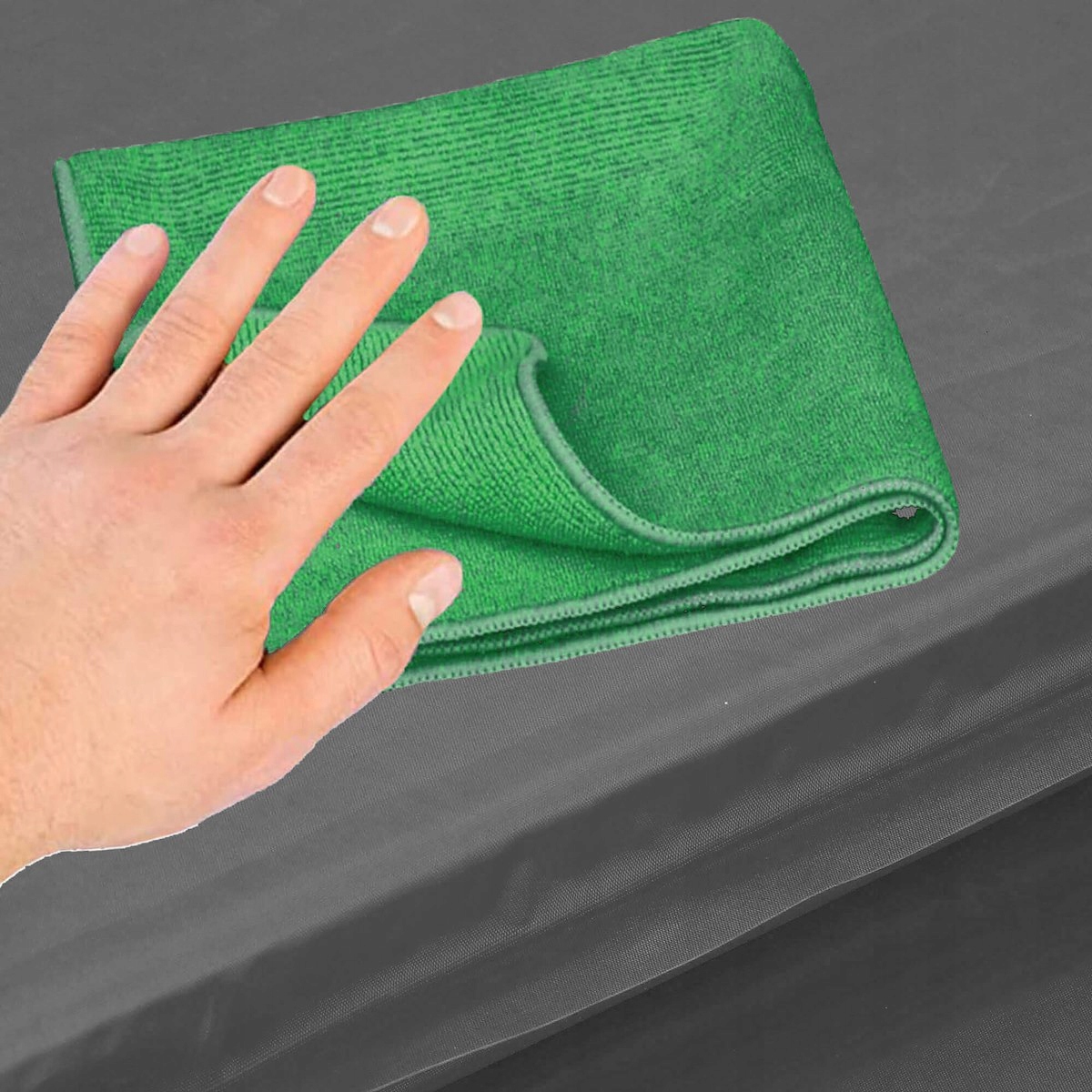 Поліестерова тканина, яка використовується в нашому килимку, сама по собі дужестійка до плям. Якщо вам потрібно почистити виріб, просто обережно протріть його вологою серветкою з мікрофібри. Обов’язково ретельно висушіть килимок у затіненому місці, перш ніж знову згорнути його.