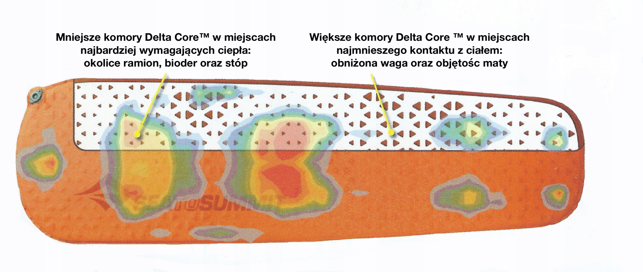 • Більші камери Delta Core-V у місцях найменшого контакту з тілом: зменшена вага та об’єм килимка