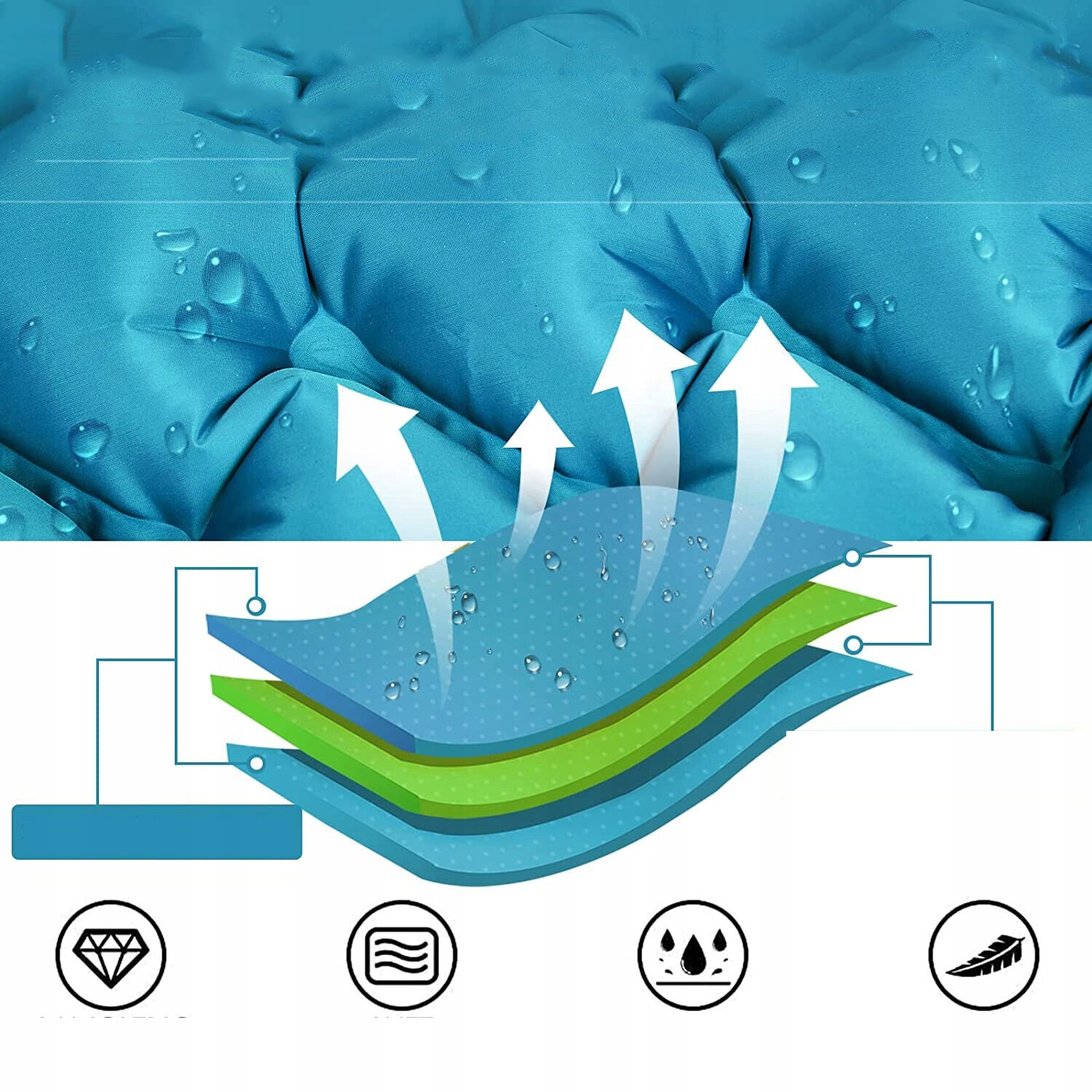 Цей кемпінговий матрац із нейлону преміум-класу 40D і ТПУ є водонепроникним, стійким до проколів і може витримати вагу 440 фунтів/200 кг після використання повністю надутий. Легко чистити, просто протріть поверхню, якщо є пил і бруд