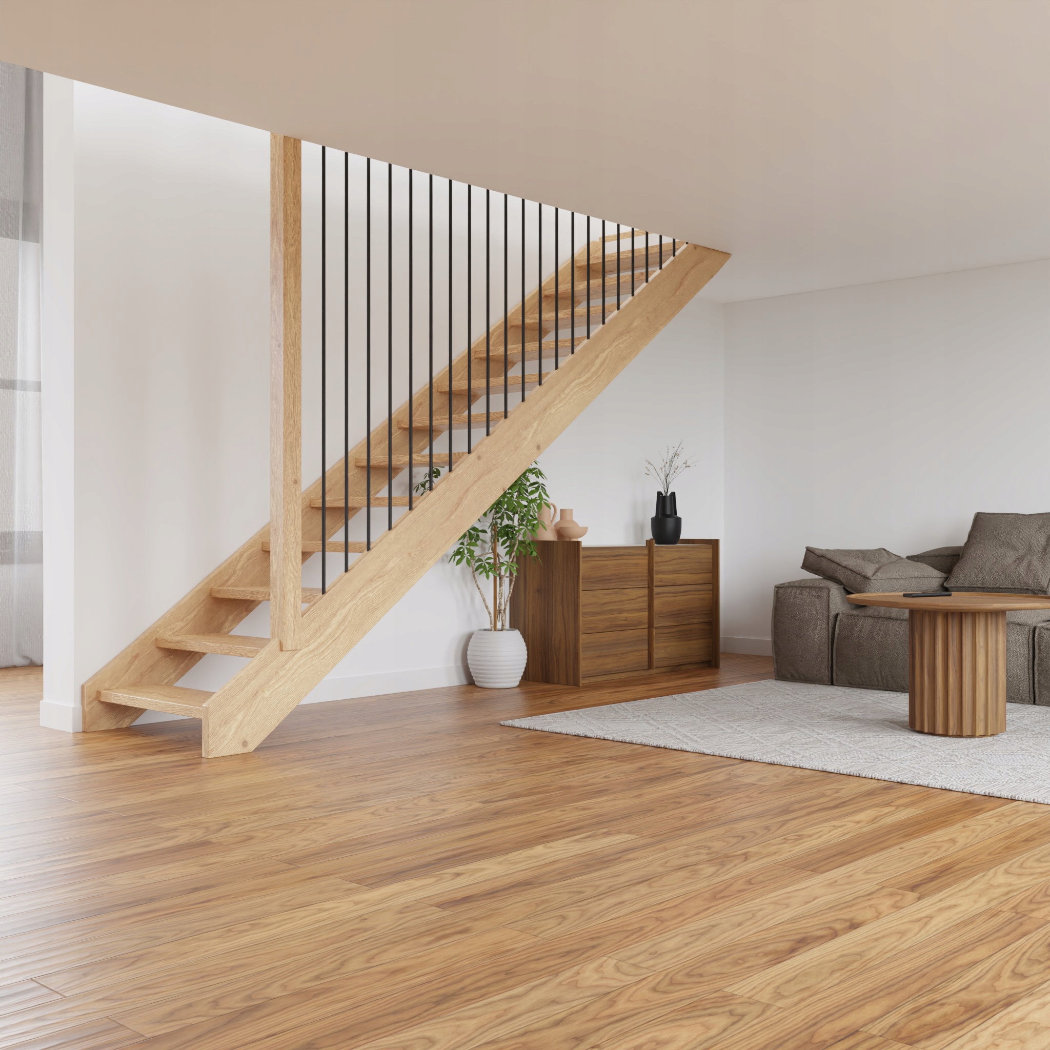 Ціна вказана за одномаршові стрингові сходи без балюстради, нефарбовані (шліфовані, готові до самостійного монтажу)