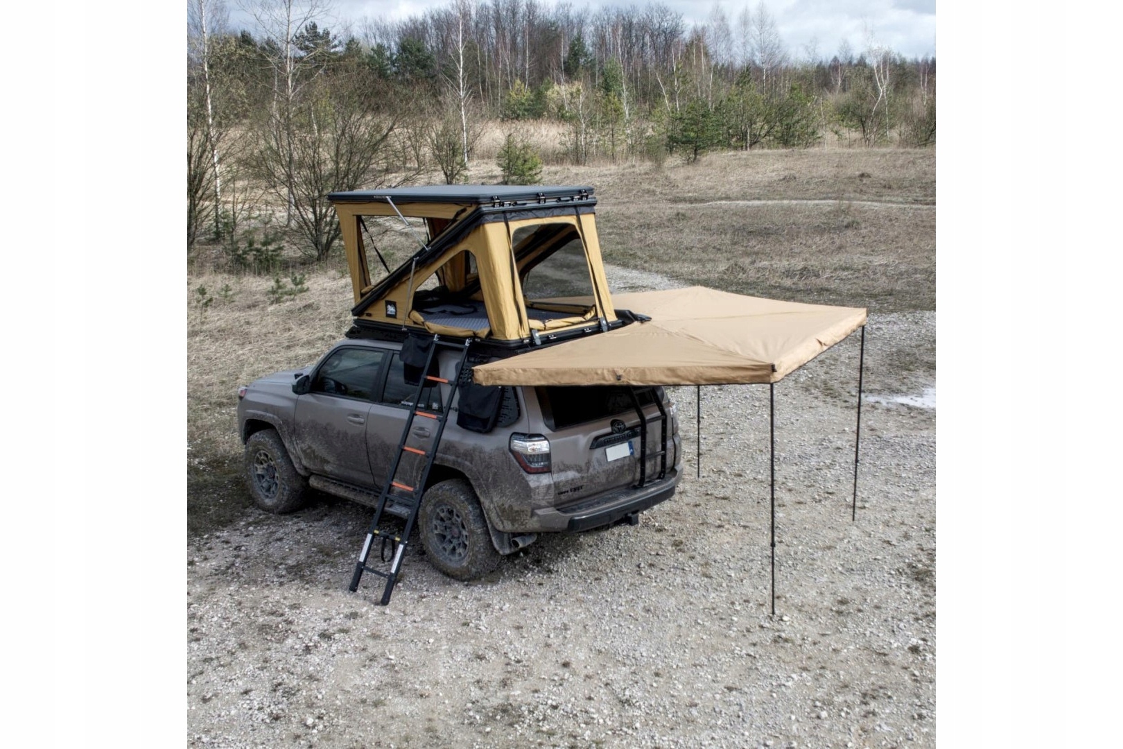 Самонесучий маркіза BATWING від OFFLANDER забезпечить ефективний захист від несприятливих погодних умов, таких як дощ або інтенсивне сонце. Крім того, це допоможе вам організувати простір навколо автомобіля, особливо в спекотні або дощові дні.