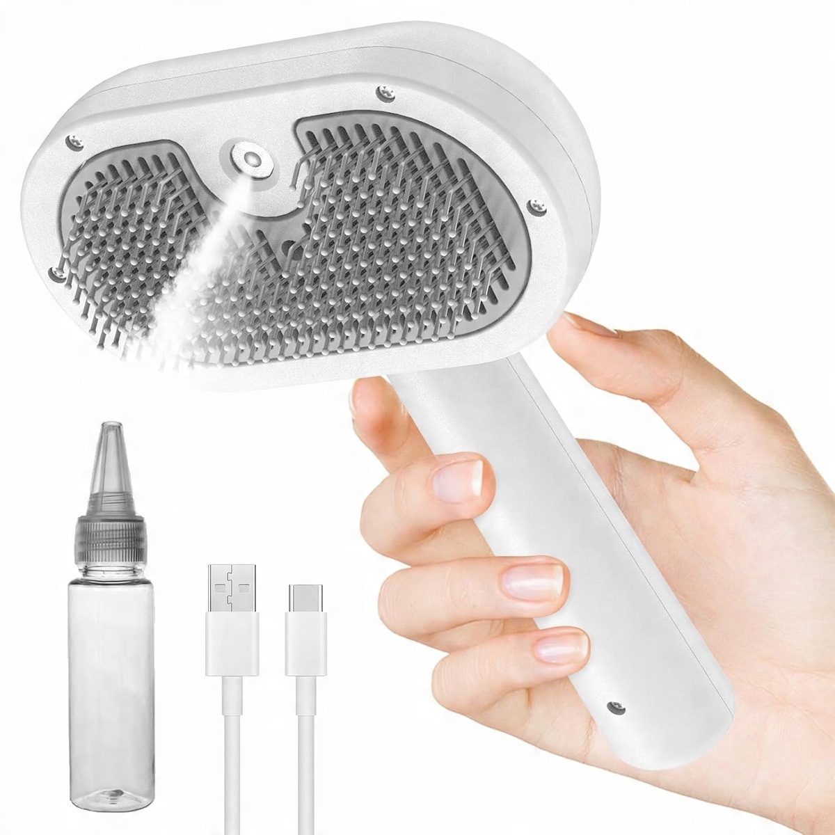 ➡️ Щітка для котів з парою, парова щітка для котів 3 в 1 зі спреєм для довгої/короткої шерсті, парова щітка для собак для масажу, догляду та видалення шерсті, парова щітка для собак з резервуаром для води та розпилювачем (білий) b>