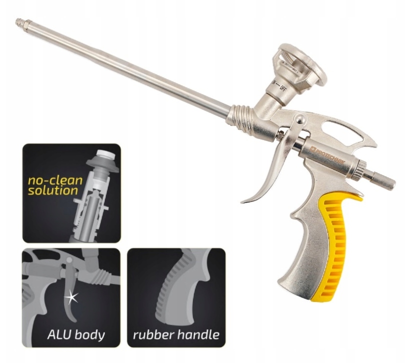 - Цей продукт має функцію без очищення . Після використання традиційного пінного пістолета піноутворювач у пістолеті легко застигає. Тому його потрібно вчасно очистити.