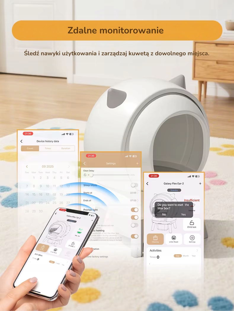 - Моніторинг із програми: дистанційно відстежуйте рівень сміття вашої кішки та активність у програмі. Ви завжди будете в курсі подій, знаючи, коли настав час замінити підстилку.