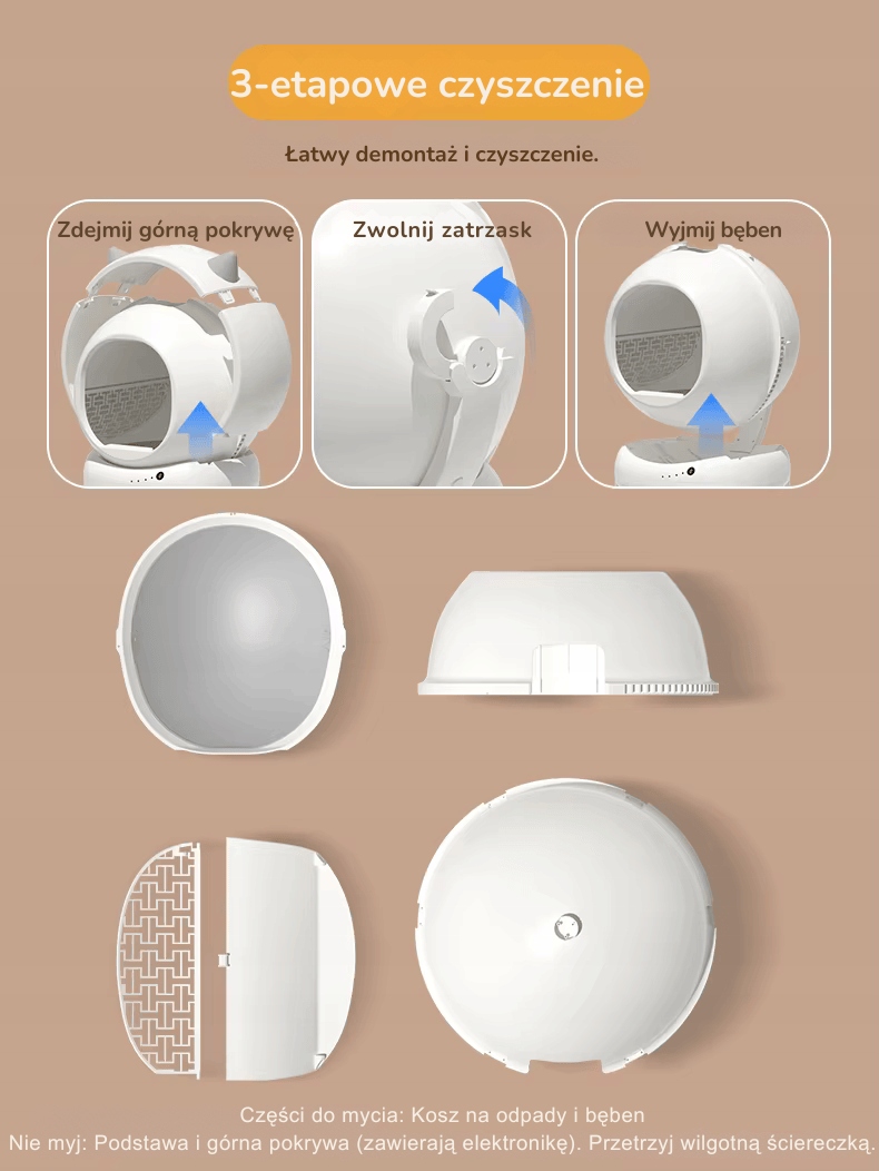 Набір складається з легкорозбірних елементів, які забезпечують швидке та ефективне очищення. Ящик для сміття та контейнер для сміття можна легко зняти та помити, забезпечуючи максимальну гігієну та комфорт використання.