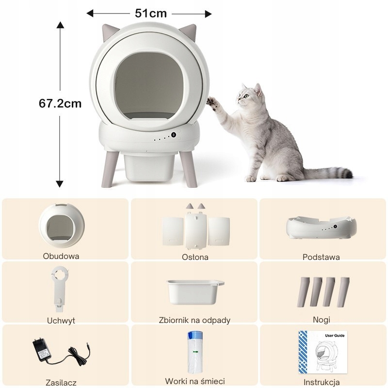 - Автоматичне очищення: ящик для сміття видаляє сміття самостійно, тому вам не доведеться турбуватися про щоденне прибирання. Інтелектуальна система просіювання відокремлює грудкувату підстилку, зберігаючи лоток свіжим.