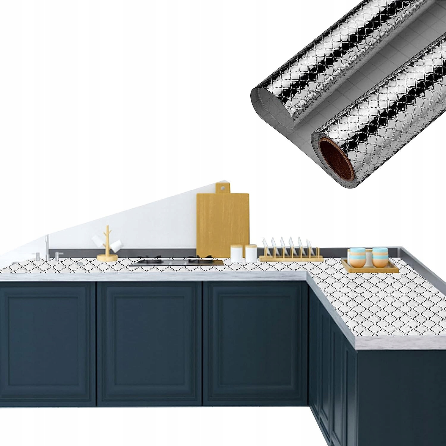 ✅Кухонна харчова плівка дуже проста у використанні ріжуча сітка на звороті, легко вирізати та прикрасити власну кухню фольгованою самоклеючою плівкою.