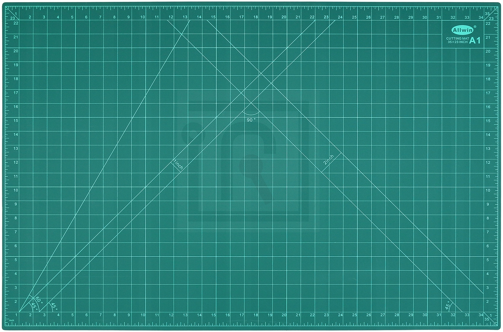 Килимок має надруковані шкали для точного різання, кути та метричну міру.