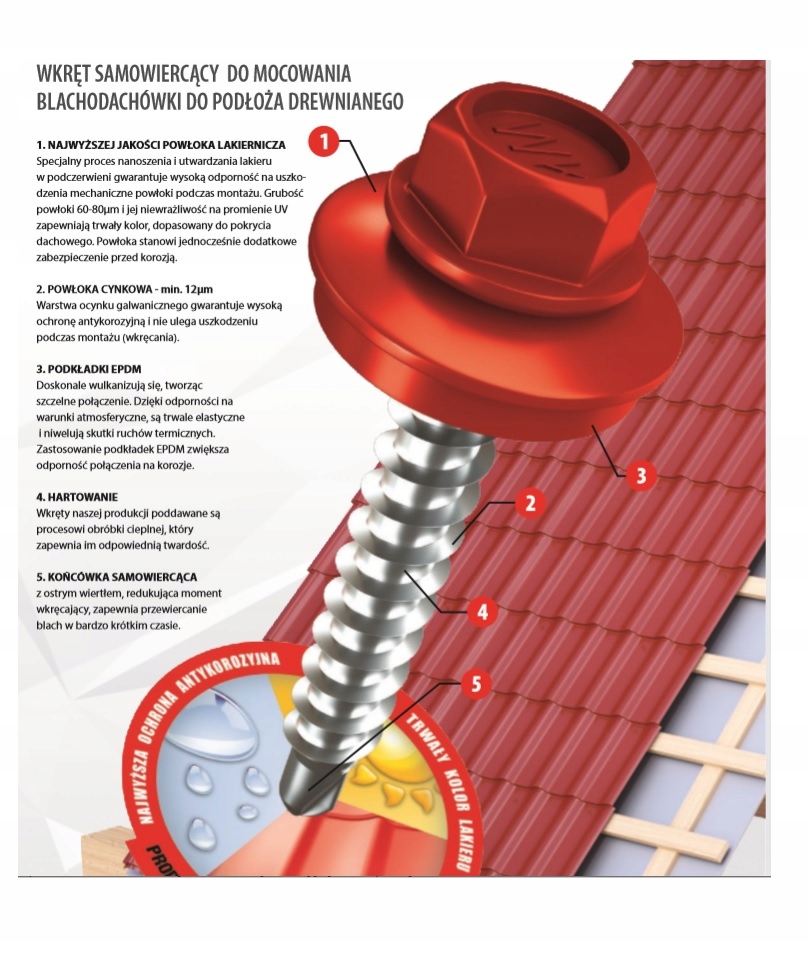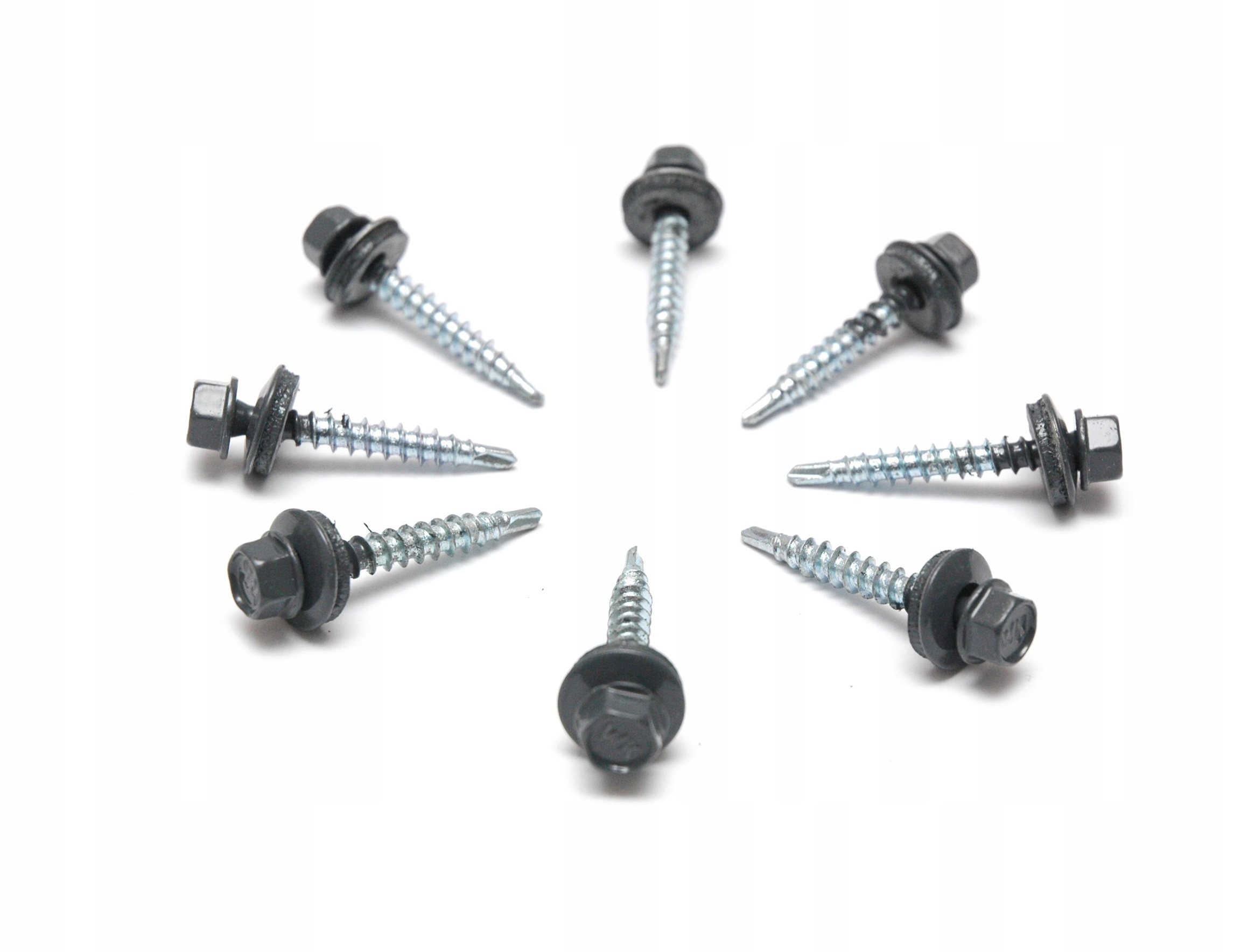 Самокрізальний шуруп з низьковуглецевої сталі з гумовою шайбою EPDM, призначений для кріплення листів, черепиці та листового металу. до дерев'яних підкладок.