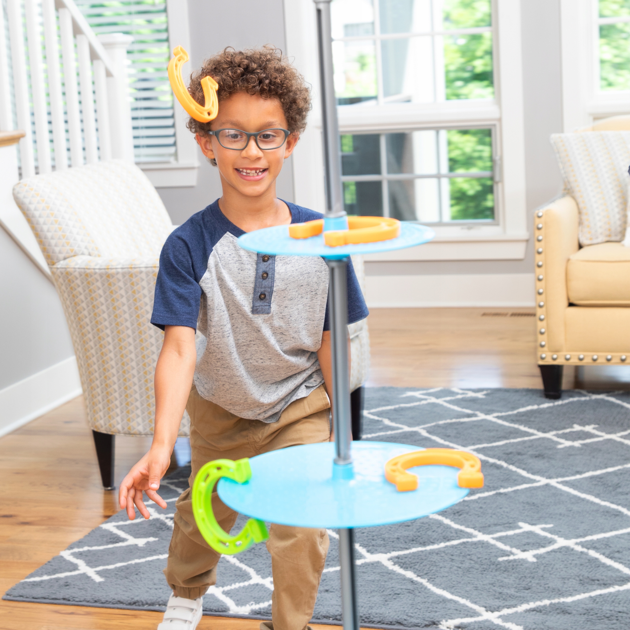 Класична гра в кидання підкови в інноваційній, саморобній версії, яка неймовірно захоплює. Гравці по черзі кидають гумові підкови, щоб вдарити та зачепити їх за підвішений стовп і платформи.