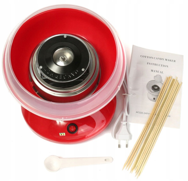 У комплекті з машинкою ви отримаєте спеціальну ложечку для насипання цукру та палички для готової вати. Щоб отримати солодку вату, вам потрібна лише чайна ложка!