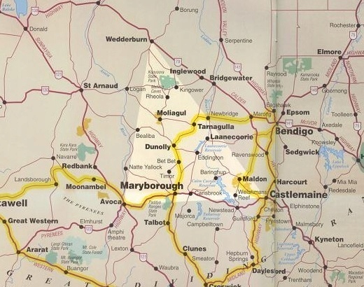 Ми додаємо карту до фотографій із позначеним регіоном австралійського вікторіанського золотого трикутника.