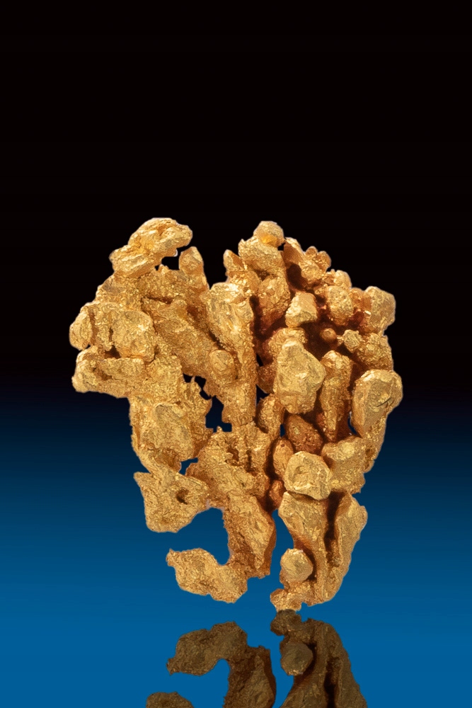 Сьогодні переплав золота досягає рекордних цін, самородки є найціннішою природною формою золота, яка існує. Створено повністю природою, чітка кристалізація та ідеальна чистота.