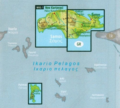 Складена, водонепроникна та туристична карта Самоса за шкалою 1: 35 000 видавничих будинків Freytag & Berndt. >