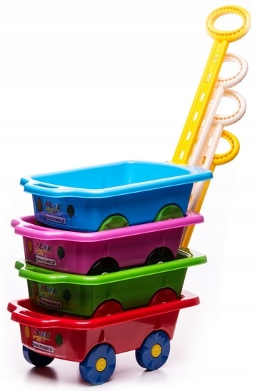 - Доступний візок у чотирьох кольорових версіях: червоний, зелений, синій і рожевий. Після здійснення покупки надайте колір візки. За відсутності інформації ми резервуємо право для доставки будь -якої вибраної іграшки.