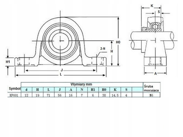 Підшипник в корпусі KP001 діаметром 12 мм з двома монтажними отворами є готовим до монтажу виробом з високою експлуатаційною довговічністю. Проста конструкція дозволяє легко та швидко встановлювати підшипник на вал.