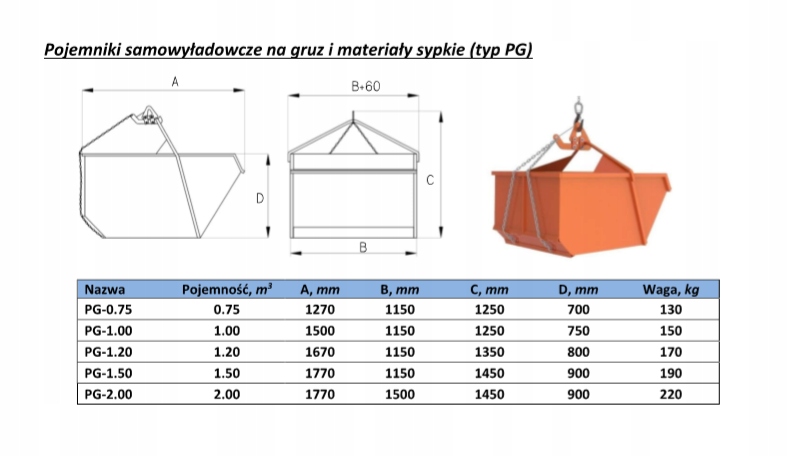 Samowyładowczy pojemink na gruz, odpady bud. 1m3