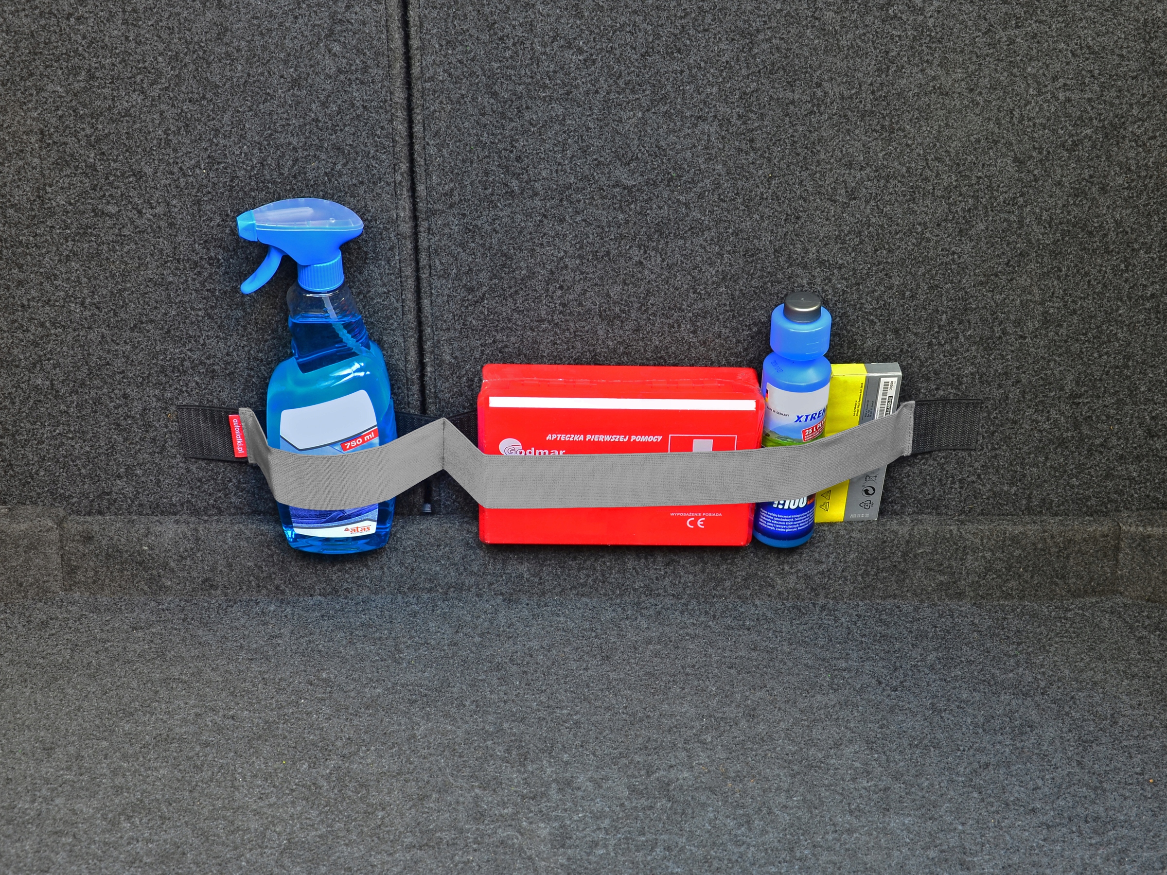 Автострапи - це швидкий і зручний спосіб упорядкувати необхідні речі, які ми перевозимо в багажнику. Продукт складається з міцної стрічки Velcro, яку ми прикріплюємо до оббивки автомобіля, і гнучкої гуми, розділеної на два асиметричні відсіки, під які ми можемо розмістити, наприклад, рідину для омивання вітрового скла, аптечку, масло або інші аксесуари, необхідні в автомобілі. Ручка запобігає переміщенню предметів під час транспортування, а також запобігає проливанню рідини. Ми пропонуємо липучки п’яти кольорів і кількох довжин, тож кожен знайде продукт, який виправдає всі його очікування.