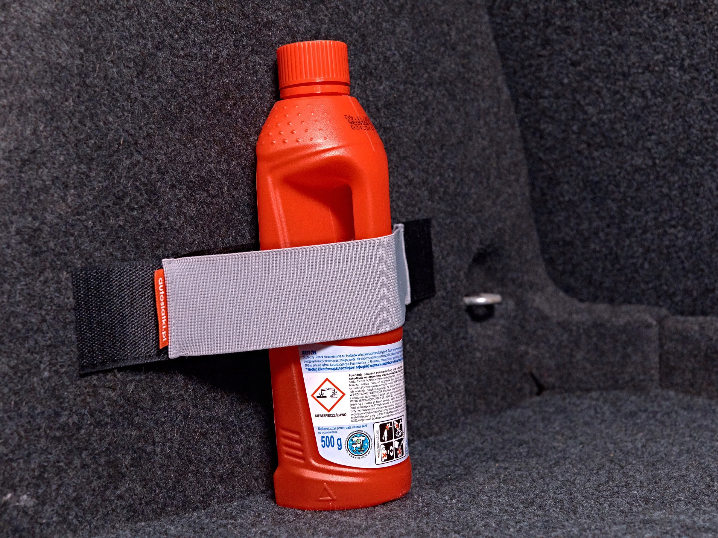 Автопепси - це швидкий і зручний спосіб для організації необхідних речей, які ми возимо в багажнику. Продукт складається з міцної стрічки Velcro, яку ми прикріплюємо до оббивки автомобіля, і гнучкої гуми, під яку ми можемо розмістити, наприклад, рідину для омивання вітрового скла, масло або інші аксесуари, необхідні в автомобілі. Ручка запобігає переміщенню предметів під час транспортування, а також запобігає проливанню рідини. Ми пропонуємо липучки п’яти кольорів і кількох довжин, тож кожен знайде продукт, який виправдає всі його очікування.