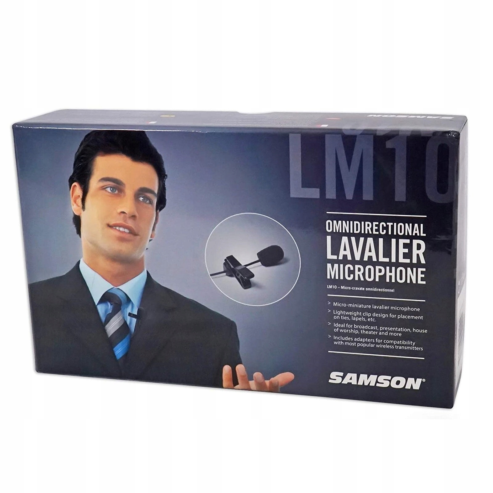 Хоча LM10 особливо добре підходить для використання з системами Samson Wireless*, чотири адаптери, що входять у комплект, також дозволяють використовувати мікрофон із більшістю інших марок бездротових передавачів. Мікрофон також постачається з чотирма лобовими панелями, щоб зменшити тріск і шум вітру, затискачем для кріплення кабелю до одягу для непомітного та непомітного розміщення кабелю та захисною сумкою для транспортування всієї системи.