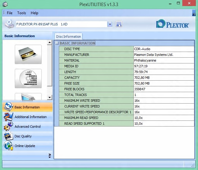 Диск ідеально підходить для запису аудіо компакт-дисків на рекордери. YamahaPlextor Premium 2 у режимі запису Audio Master Quality \ Advanced Audio Master Quality Recording