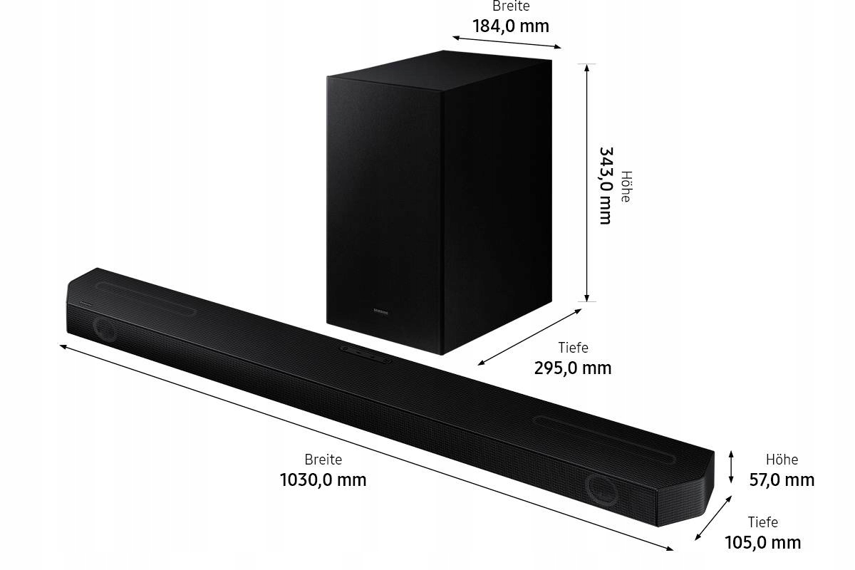 Завдяки двом звуковим корпусом, що нагадують флейти, звукові світи створюються в найменшому просторі. У поєднанні з алгоритмом UPMIX звукові сигнали відображаються в якості звуку, що заповнює всю кімнату. Звукова панель не тільки випромінюється вперед до глядача, але і на бік і трохи вгору. Звук відображає з бічних стін кімнати та повертається - створюючи навколишній звук. Акустика для забезпечення збалансованого, заповнюючого звуку. Аудіо -лабораторія Samsung розробляє нові аудіо -технології та покращує якість звуку, одночасно керуючи еволюцією парадигм аудіо -ринку. І потужні низькі звуки звукових смуг забезпечують 3D -звук, ідеально підходящий для вашої гри. Відчуйте безпілотник спортивного автомобіля і ніколи не пропустіть гравця, який повзає вас. Звукова смуга автоматично переходить на ігровий режим Pro після підключення до телевізора, тому вам не доведеться вводити будь -які додаткові налаштування, і ви можете повністю зосередитись на грі. У ігровому центрі (Q700c) звук адаптований до відповідного жанру гри. Граючи свою улюблену пісню на сумісному смартфоні, ви можете просто застосувати її до звукової смуги та швидко перемістити пісню, щоб насолоджуватися її вражаючою якістю звуку за допомогою звукової смуги.