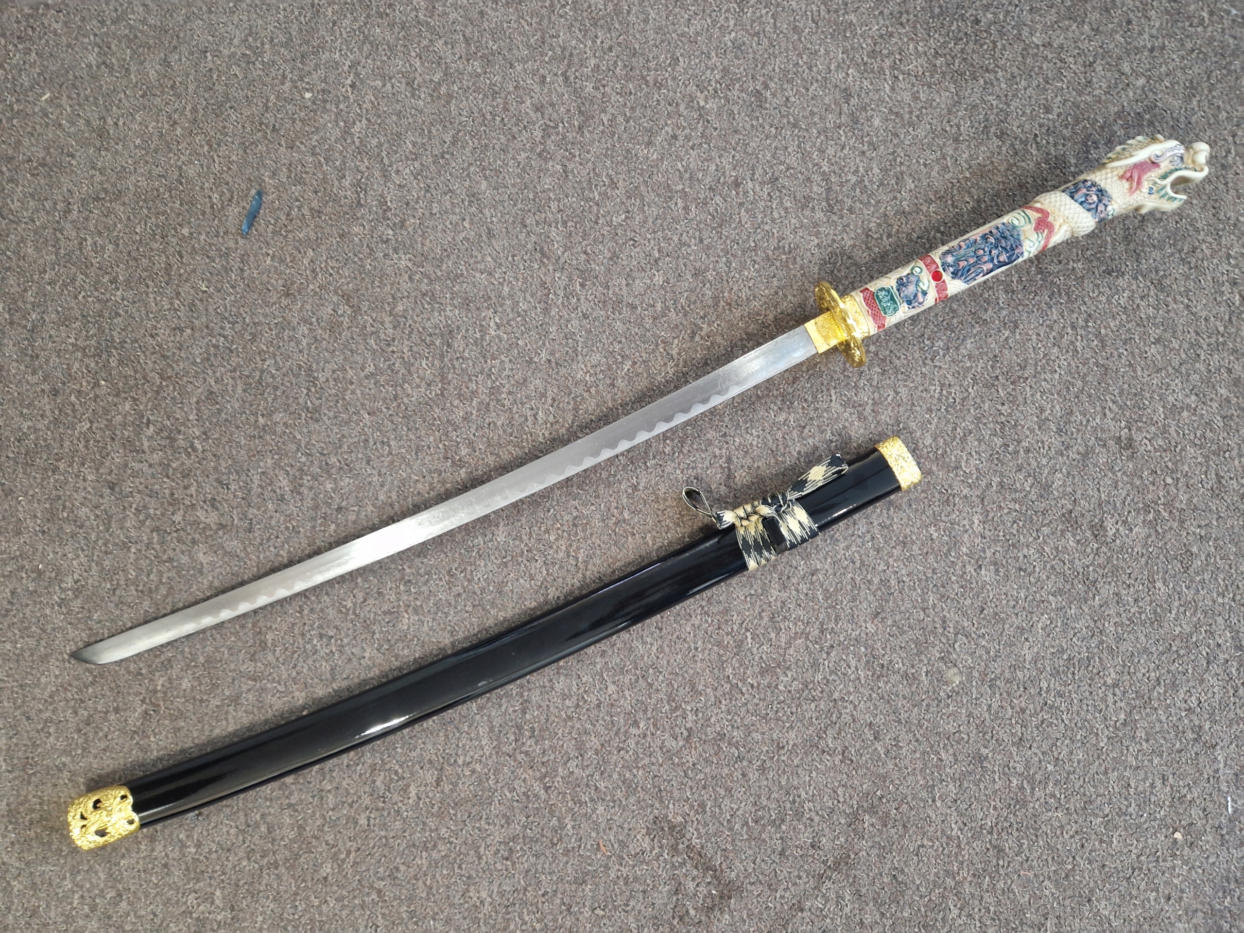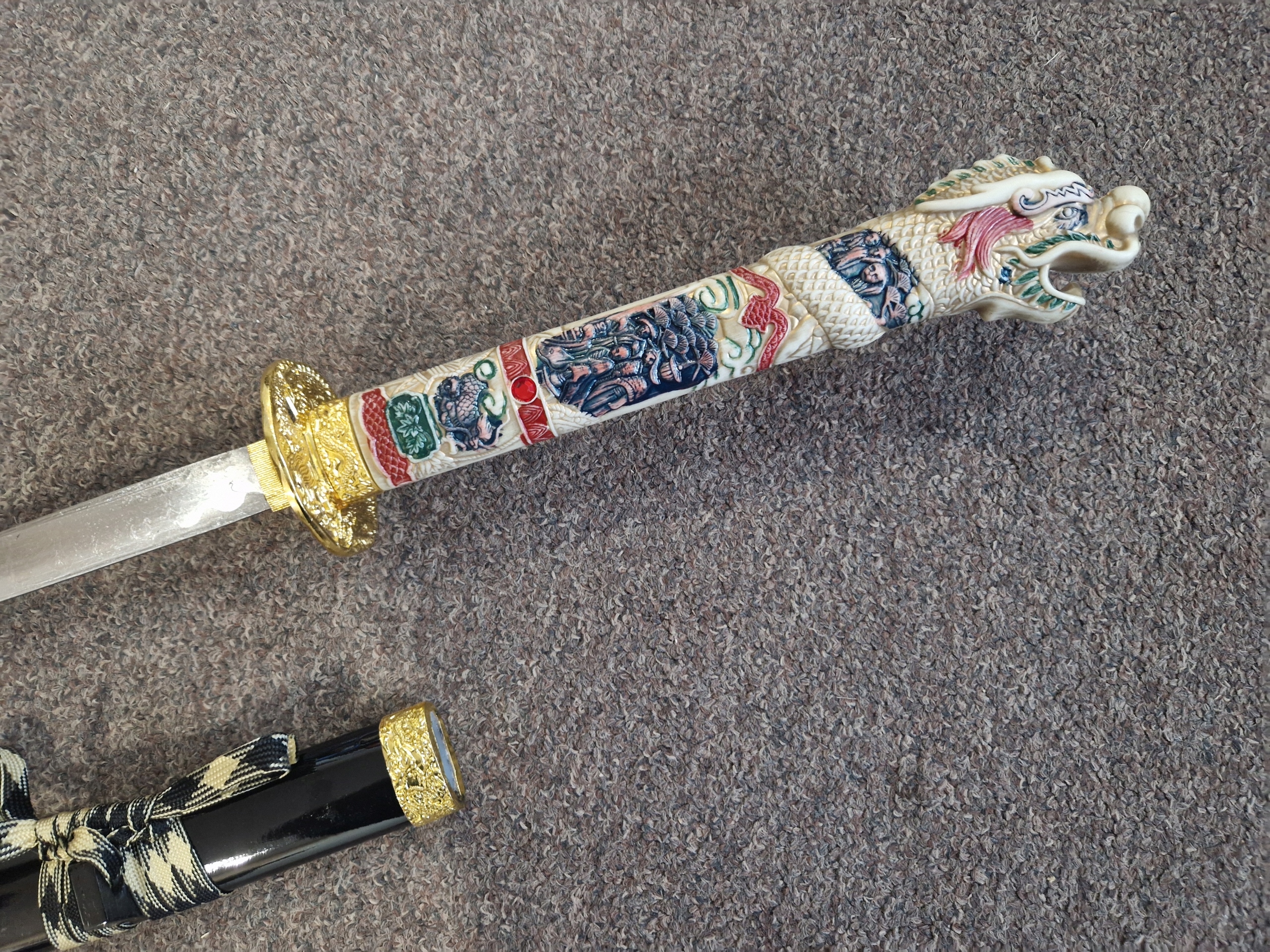 Ручка: імітація слонової кістки з багатим гравіюванням - закінчується головою дракона