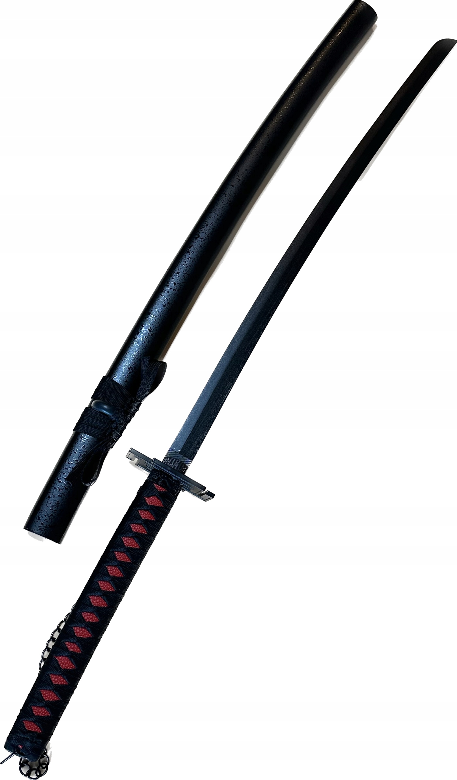 НОЖНИ/SAYA: тверда деревина - лакована - насиченого чорного кольору з мозаїкою блискучих острівців, прикрашена чорною стрічкою