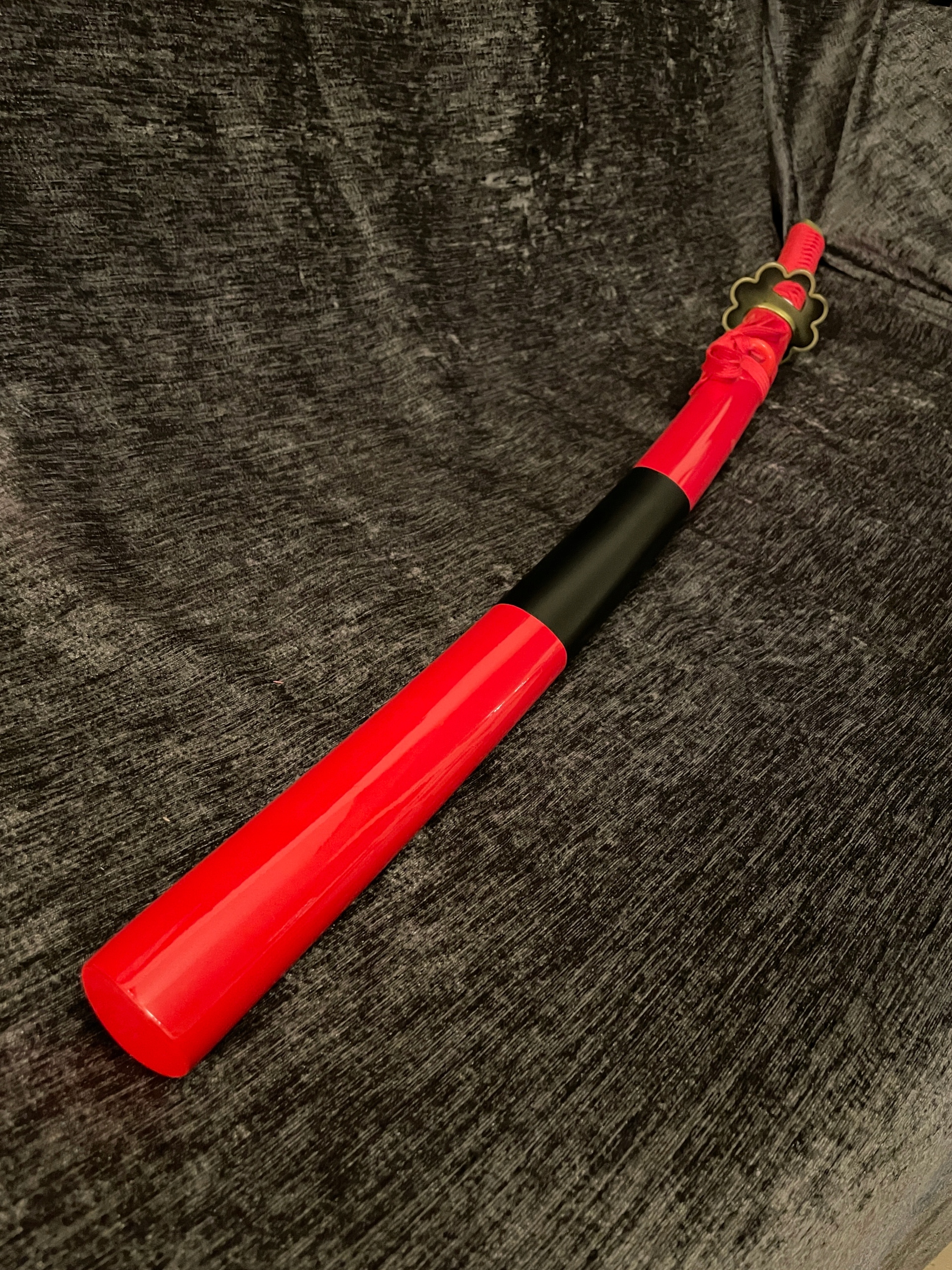НОЖНИ/SAYA: тверда деревина - лакована - темно-червоний піаніно, стрічковий декор бантик, піхви оздоблені латунним посиленням