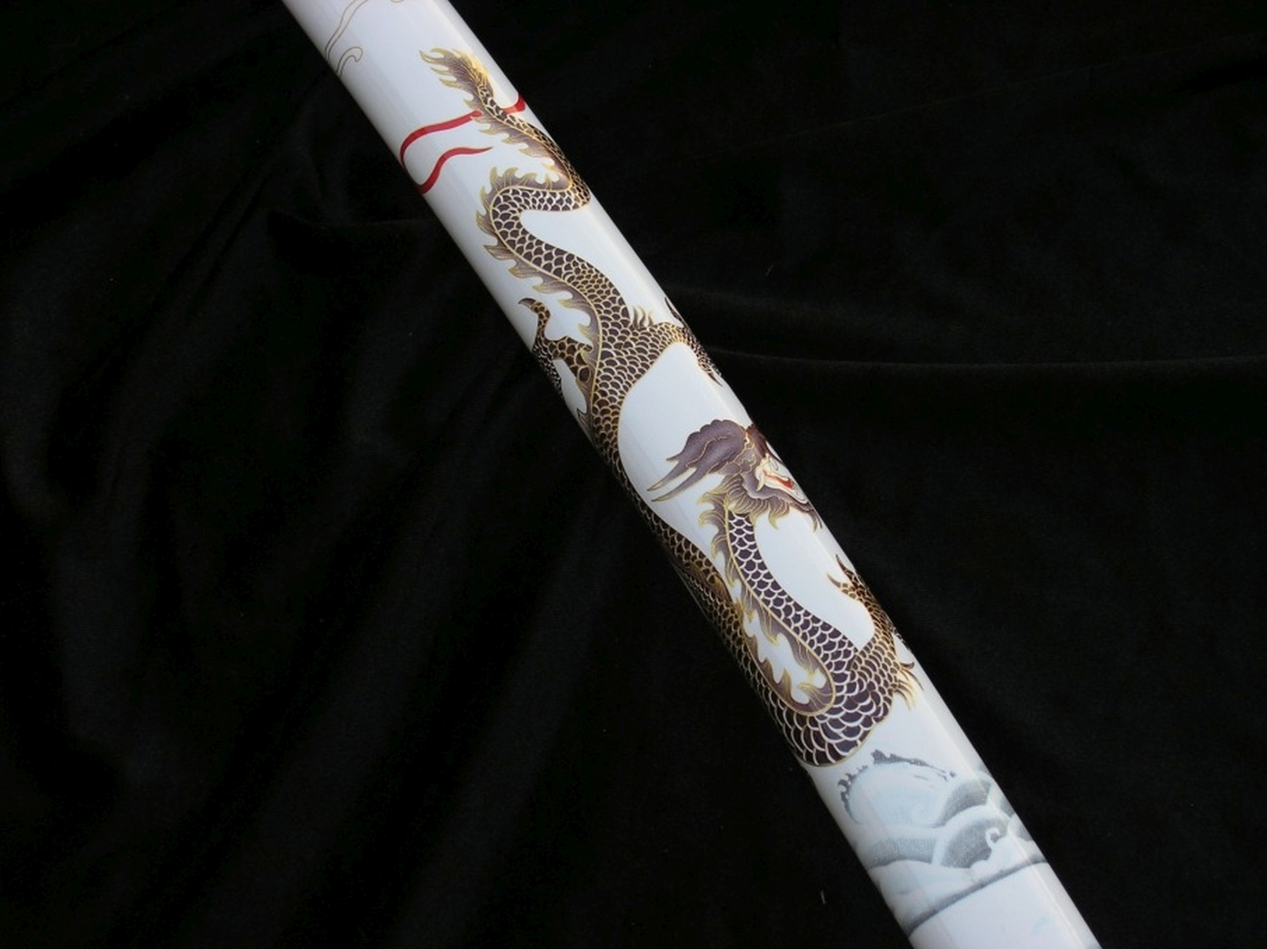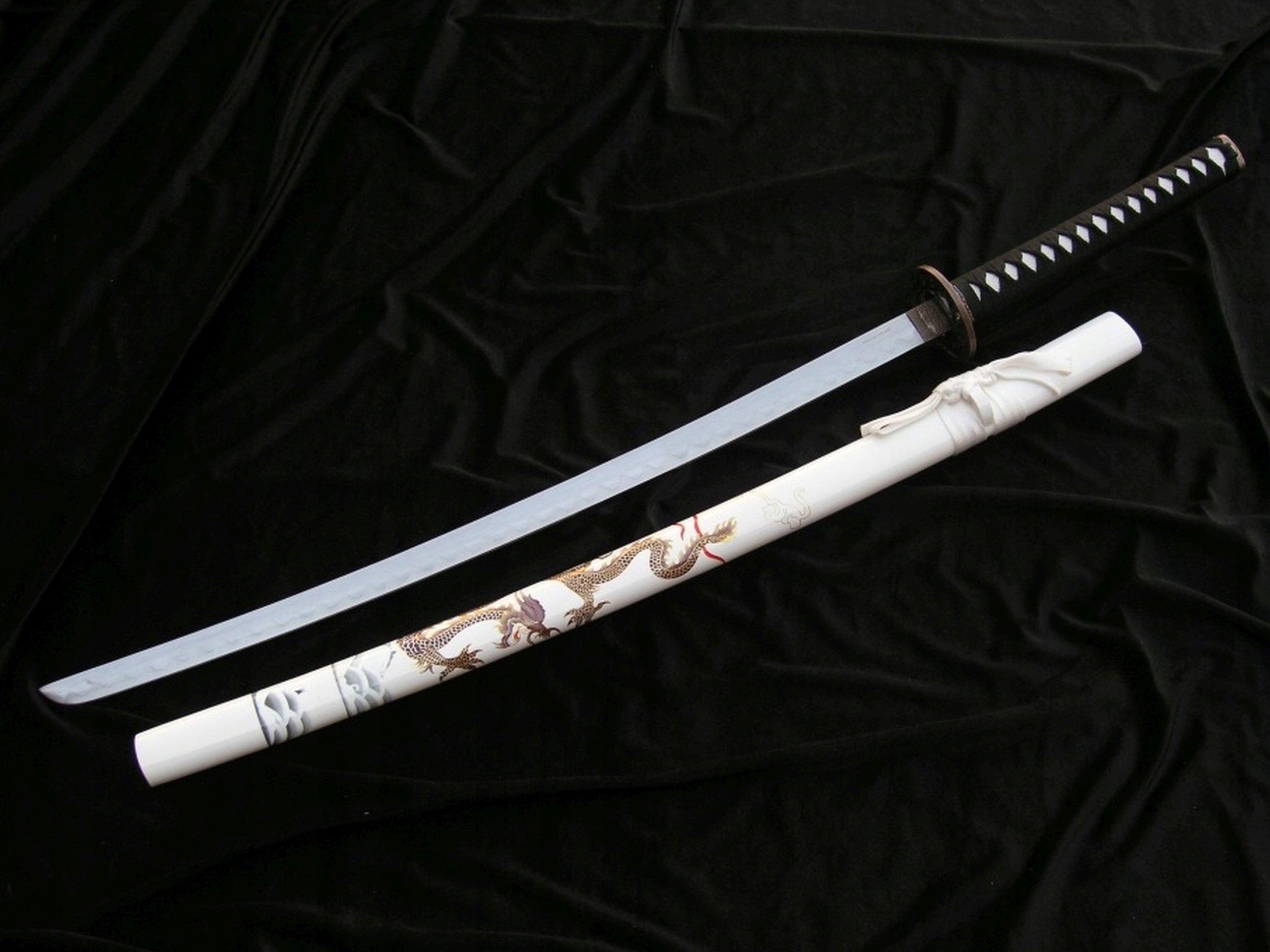 ❇️Кожен елемент цієї катани був виготовлений з надзвичайною увагою до деталей. Лезо з високоякісної вуглецевої сталі було відполіровано вручну, а характерний хамон надає йому автентичного вигляду. Дерев'яні піхви прикрашені мотивом дракона, що символізує силу та мудрість. Ручка загорнута в бавовняну тасьму з імітацією шкіри ската, захованою під нею. Цуба та кашира, виготовлені зі сплаву цинку та алюмінію, додають мечу елегантності та характеру. Таке поєднання традиційної техніки з сучасними матеріалами робить катану не тільки красивою, але й довговічної.