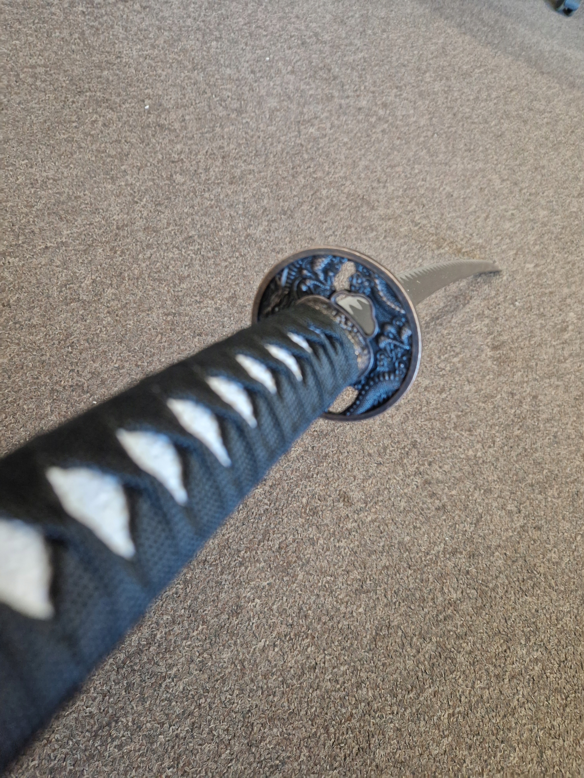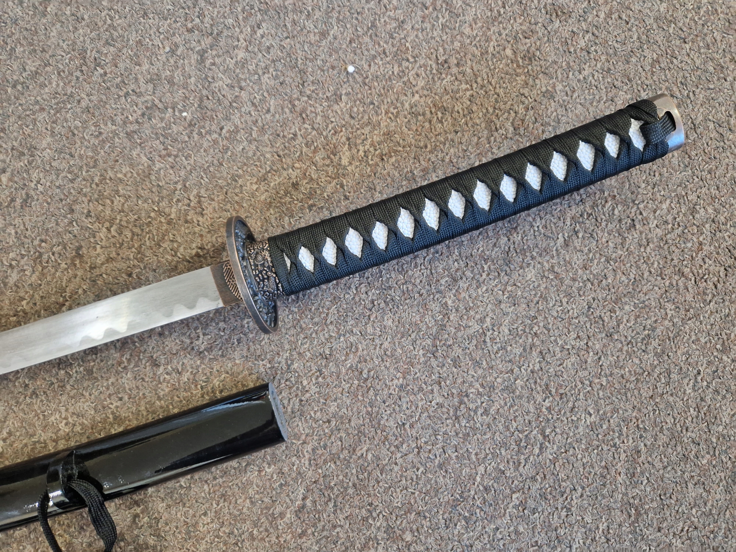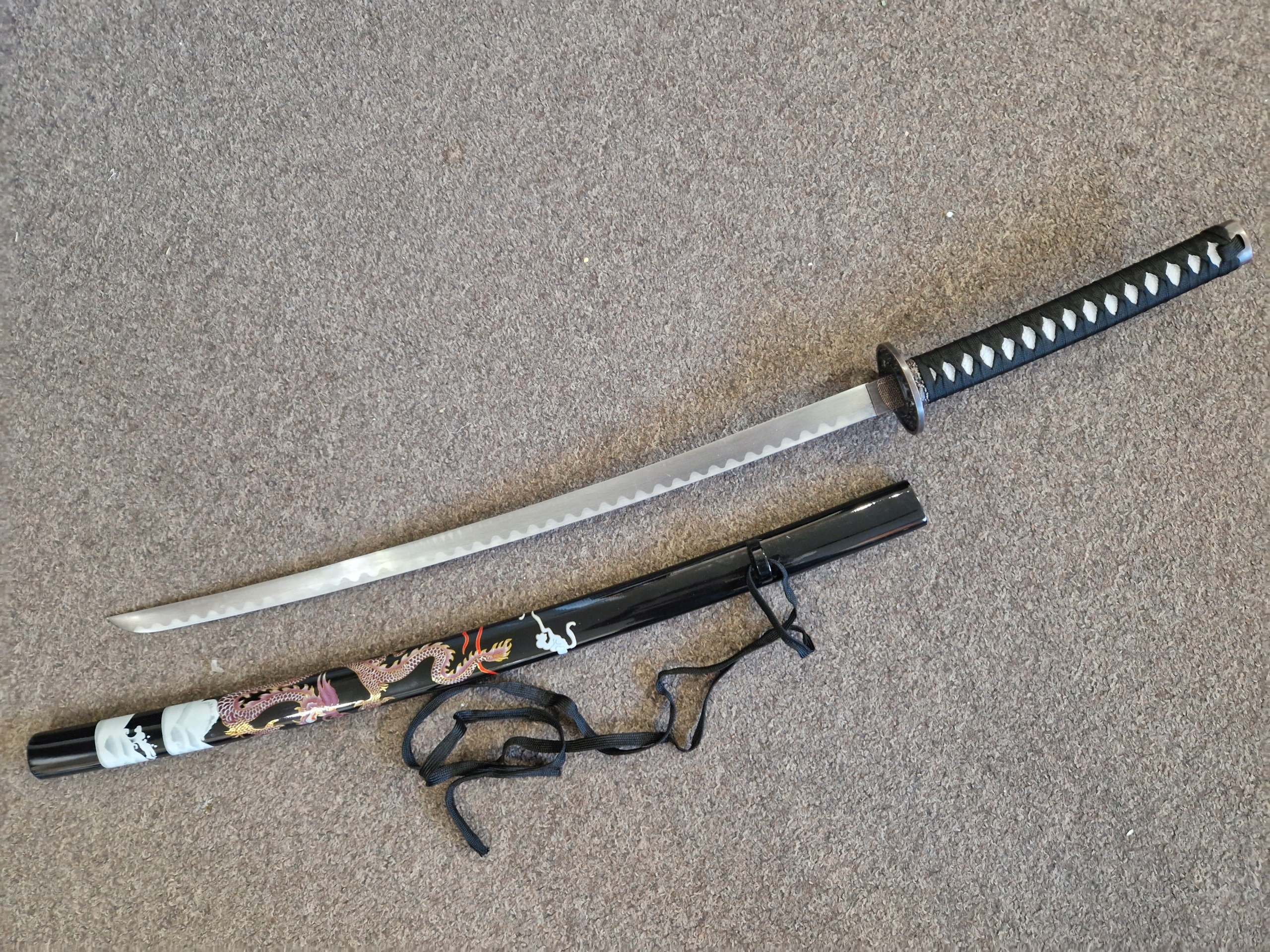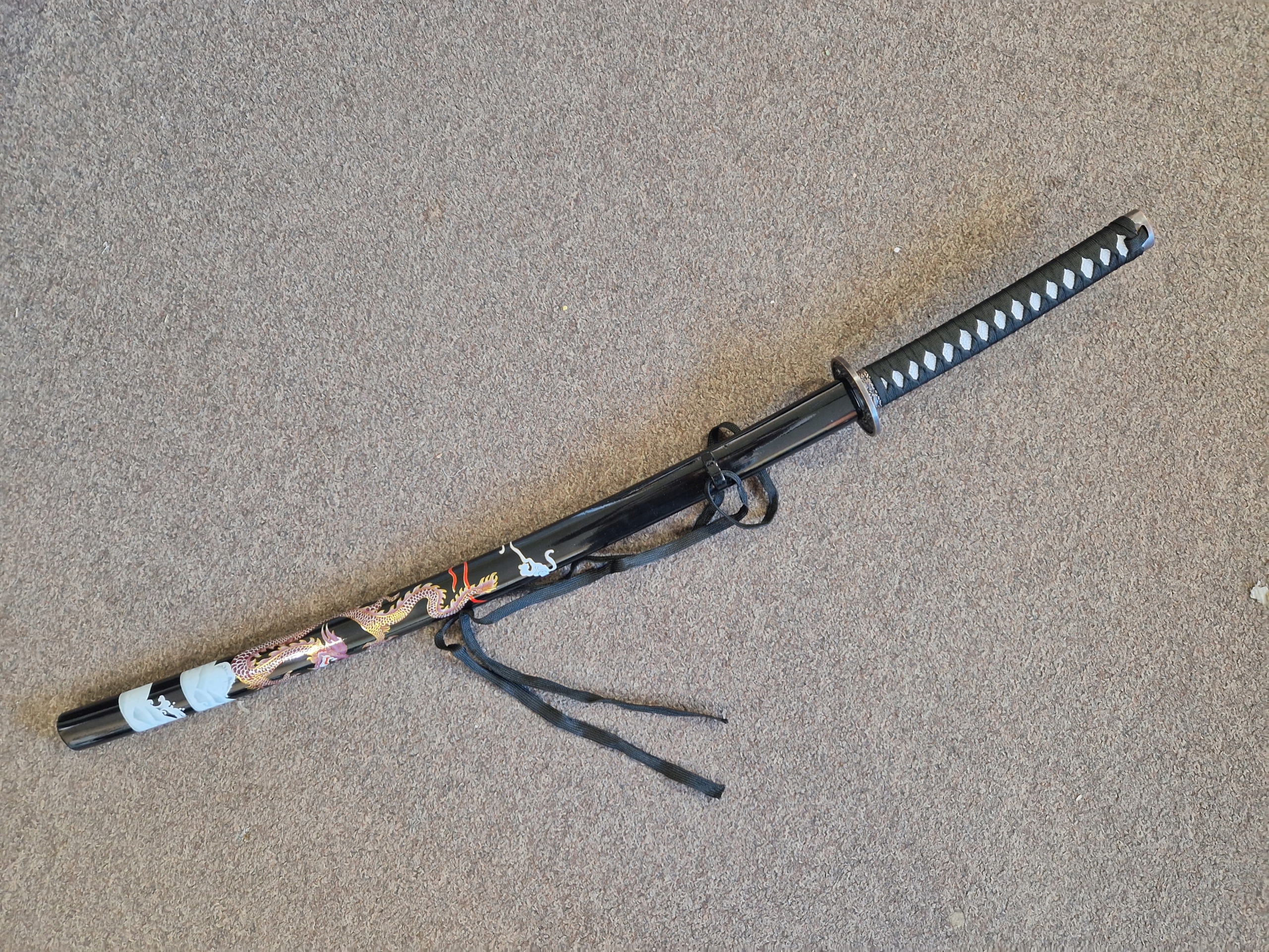 НОЖНИ/ САЯ: тверда деревина - лакована бавовняна тасьма (сагео) КРАСИВИЙ МОТИВ ДРАКОНА НА ПИХНАХ