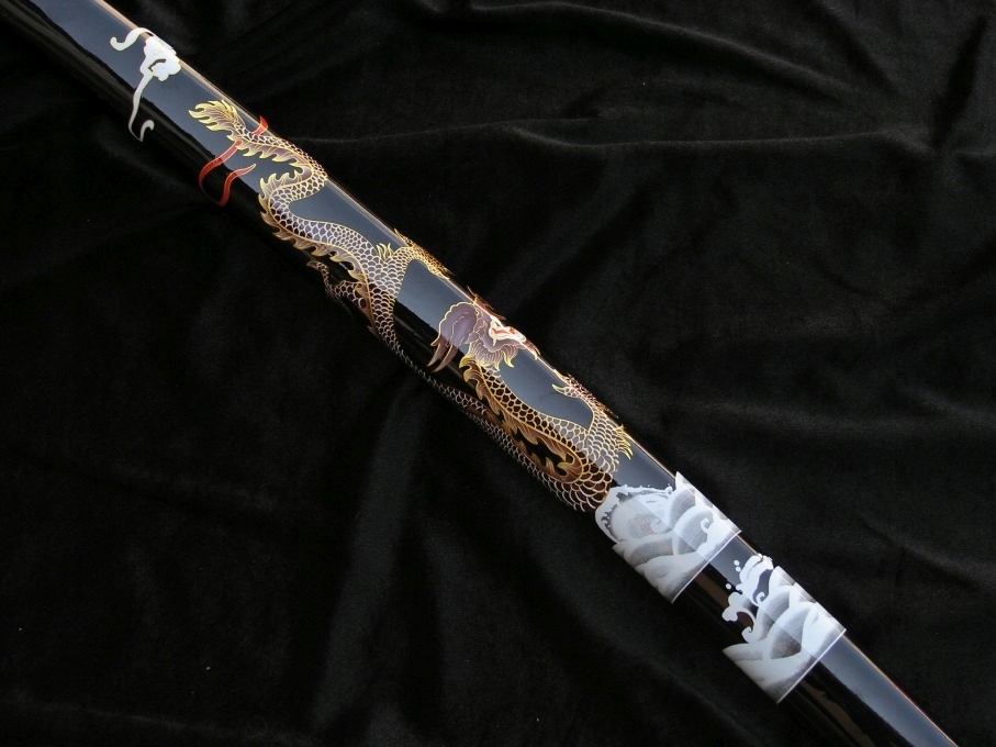 НОХВИ/ САЯ: тверда деревина - лакована бавовняна тасьма (сагео) НА НОХАХ ГАРНИЙ МОТИВ ДРАКОНА