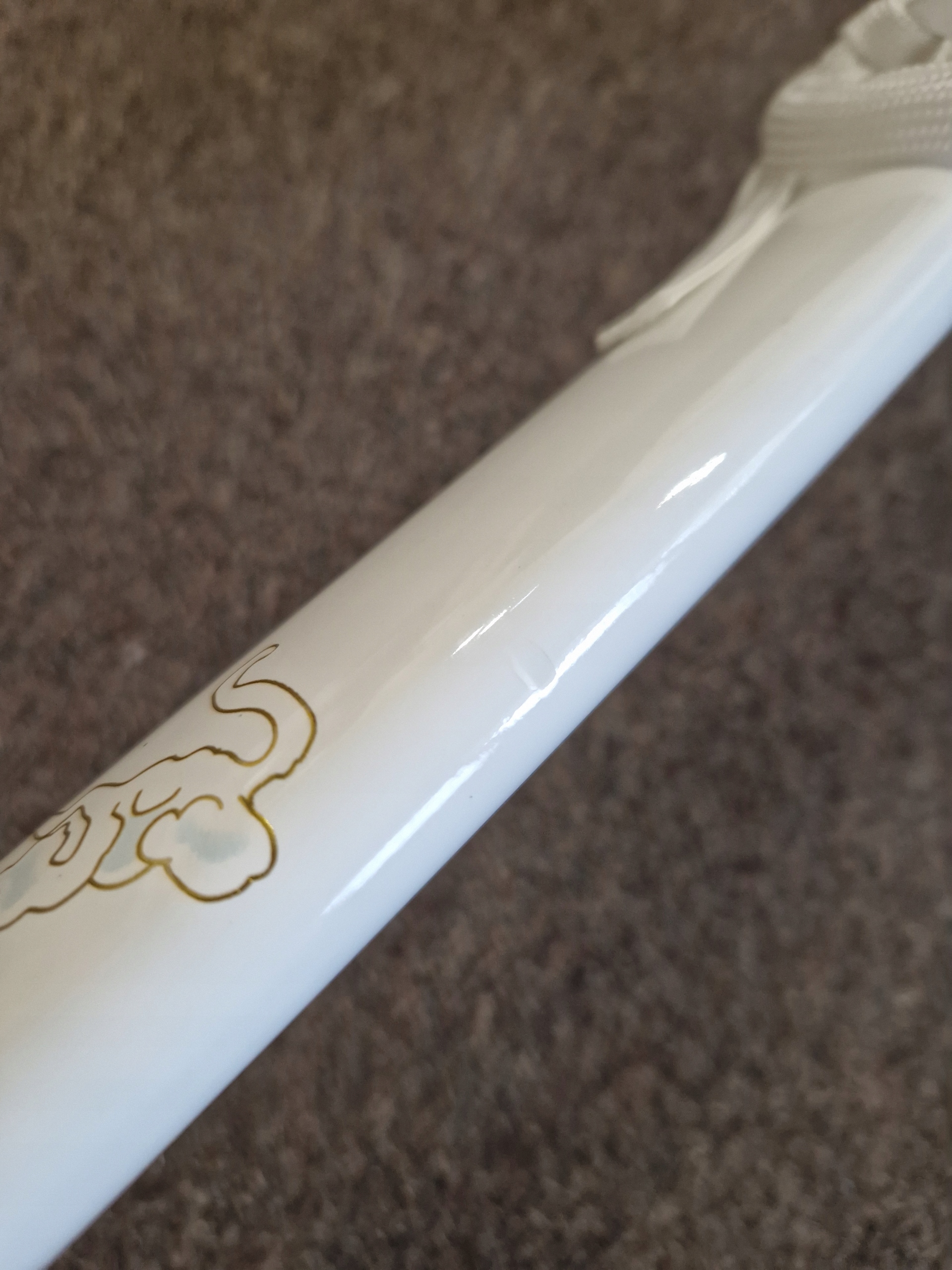 ❇aets Елемент цієї катани був зроблений з надзвичайної уваги до деталей . Лезо з високоякісною вуглецевою сталь було відшліфовано вручну, а характерна хамон надає йому справжній вигляд. дерев’яна піхва прикрашена мотивом дракона , що символізує силу та мудрість. Ручка загортається в бавовняну косу , під якою є імітація шкіри променів . Цуба та Кашира, виготовлені з цинку та алюмінієвого сплаву , додайте до меча елегантність та характер. Це поєднання традиційних прийомів із сучасними матеріалами робить катану не тільки красивою, але й . .