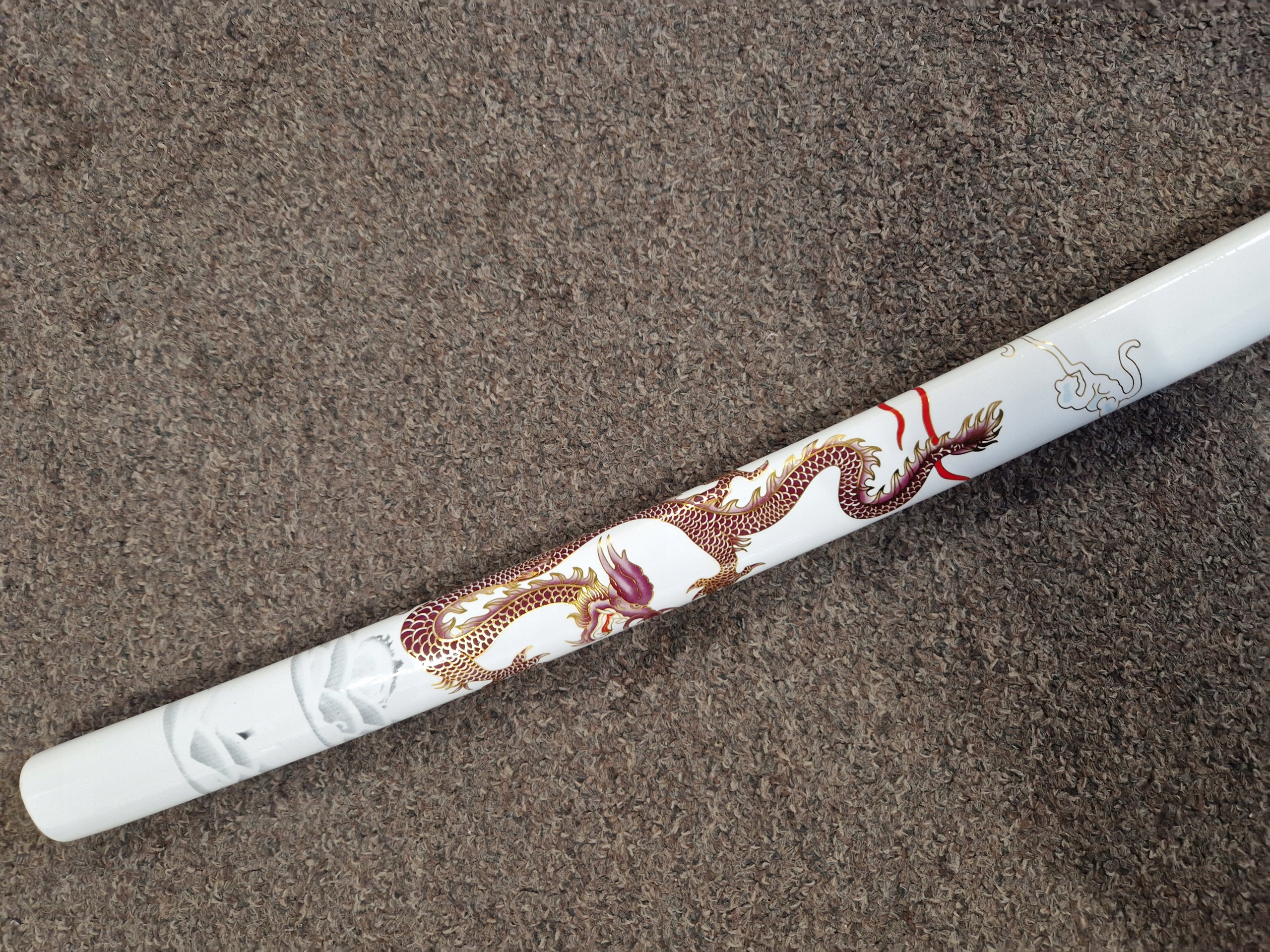❇aets Елемент цієї катани був зроблений з надзвичайної уваги до деталей . Лезо з високоякісною вуглецевою сталь було відшліфовано вручну, а характерна хамон надає йому справжній вигляд. дерев’яна піхва прикрашена мотивом дракона , що символізує силу та мудрість. Ручка загортається в бавовняну косу , під якою є імітація шкіри променів . Цуба та Кашира, виготовлені з цинку та алюмінієвого сплаву , додайте до меча елегантність та характер. Це поєднання традиційних прийомів із сучасними матеріалами робить катану не тільки красивою, але й . .