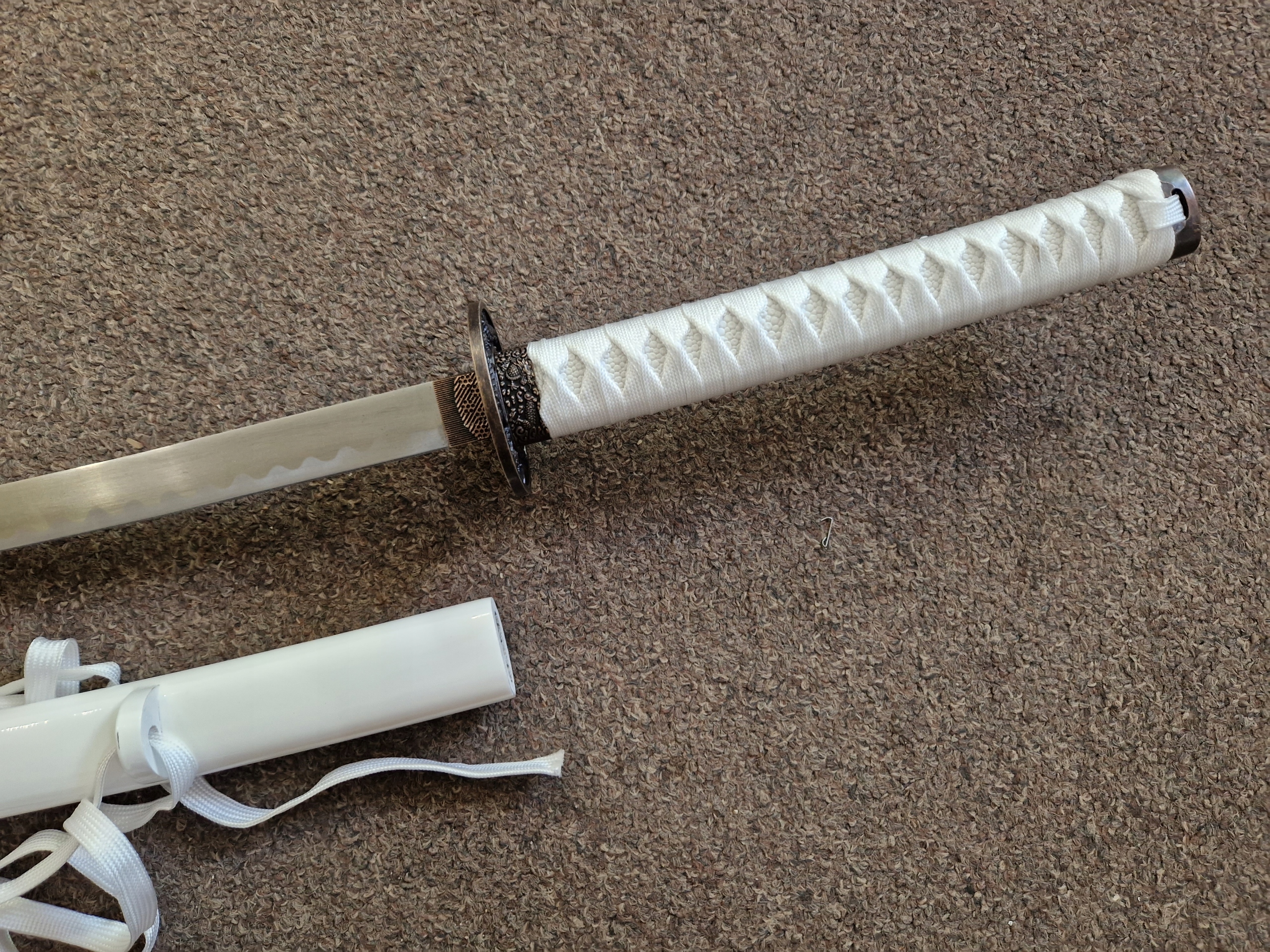 ❇aets Елемент цієї катани був зроблений з надзвичайної уваги до деталей . Лезо з високоякісною вуглецевою сталь було відшліфовано вручну, а характерна хамон надає йому справжній вигляд. дерев’яна піхва прикрашена мотивом дракона , що символізує силу та мудрість. Ручка загортається в бавовняну косу , під якою є імітація шкіри променів . Цуба та Кашира, виготовлені з цинку та алюмінієвого сплаву , додайте до меча елегантність та характер. Це поєднання традиційних прийомів із сучасними матеріалами робить катану не тільки красивою, але й . .